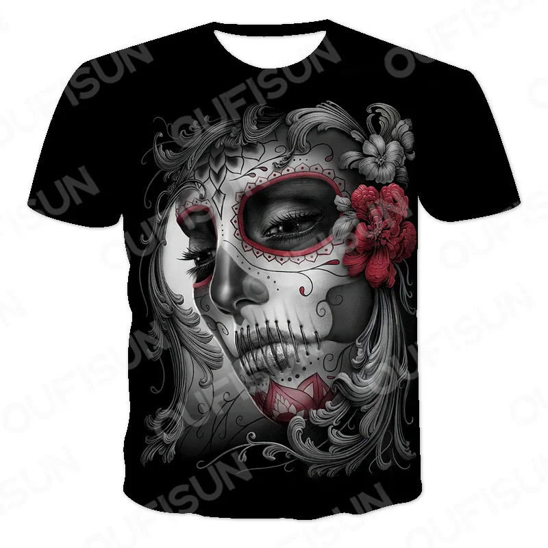Летние 3dprinting Классический череп для мужчин и женщин; Удобная свободная футболка с коротким рукавом и О-образным вырезом модные Универсальные все-матч футболка