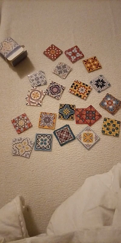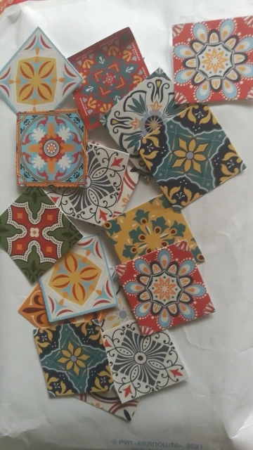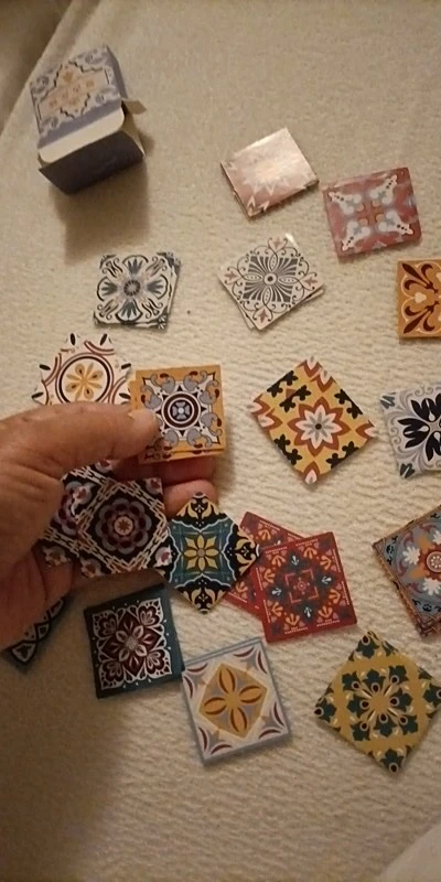 Adesivos bonitos, boa qualidade de impressão, mas o acabamento de corte deixa a desejar e eles são um tanto finos. Eles são muito pequenos, bem menor do que o esperado. O tamanho na descrição do produto indica 44mm, mas esse é o tamanho da caixa; o tamanho dos adesivos em si é por volta de 33mm. Bem menor do que as caixas de outros adesivos similares/com outras estampas desse site. Mas são realmente bem bonitos e vieram na quantidade certa com a estampa pedida (azulejos).