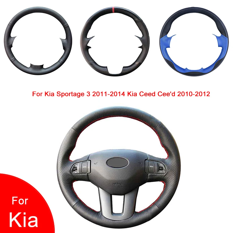 Дышащая сшитая вручную черная искусственная кожа Чехол рулевого колеса автомобиля для Kia Sportage 3 2011-2014, Kia Ceed Cee 'd