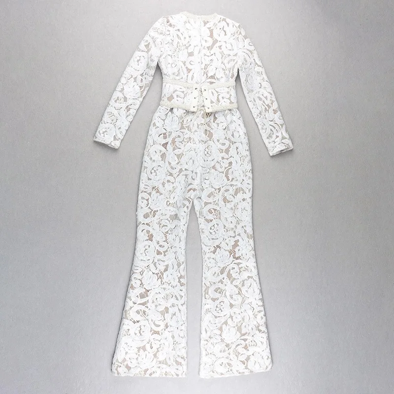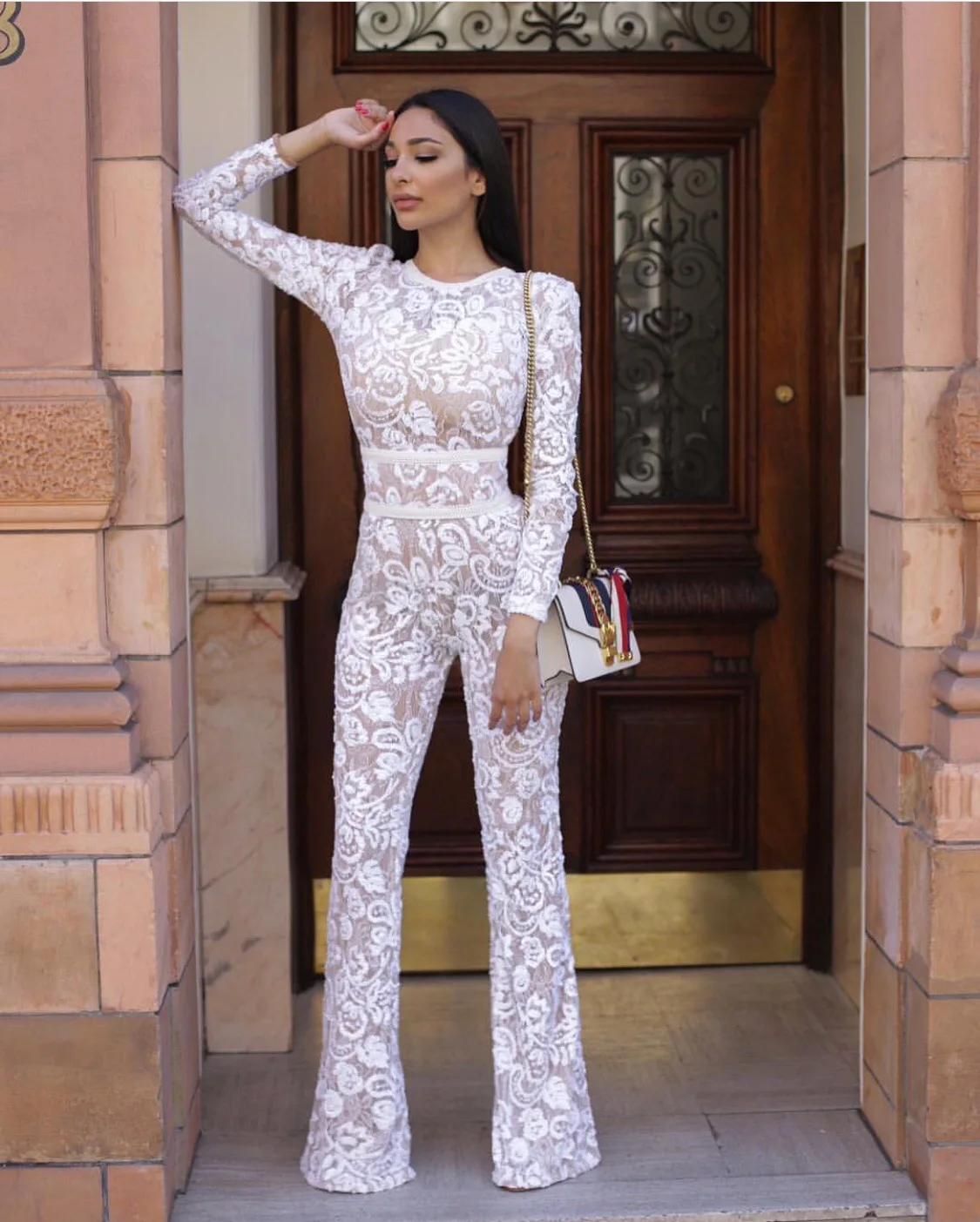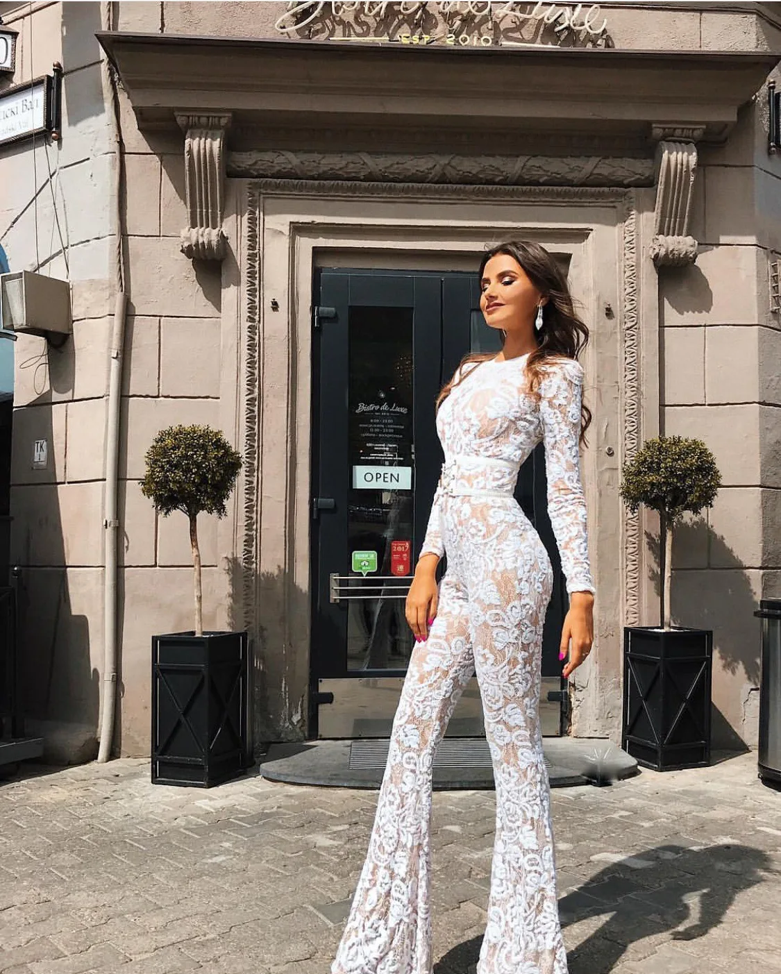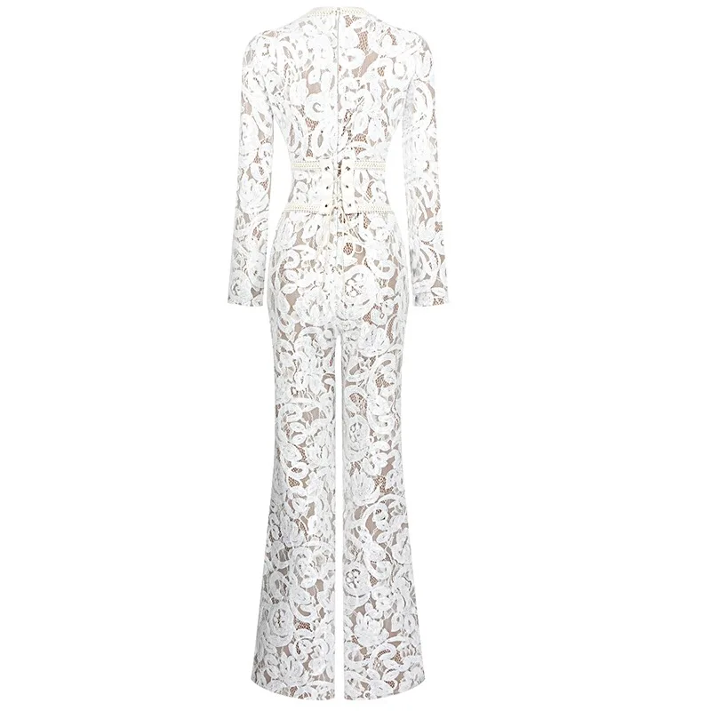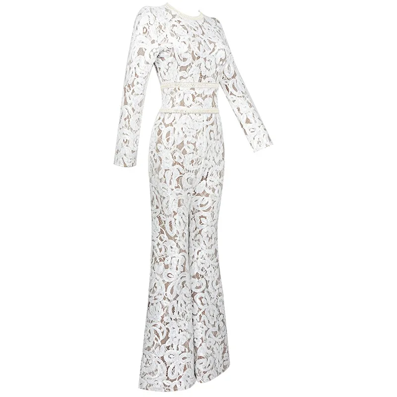 2021 новый сексуальный Хай-стрит Для женщин одежда с длинным рукавом с цветочным принтом белого цвета как у знаменитостей, дизайнерские комбинезон элегантный Высокая Талия Форма комбинезон