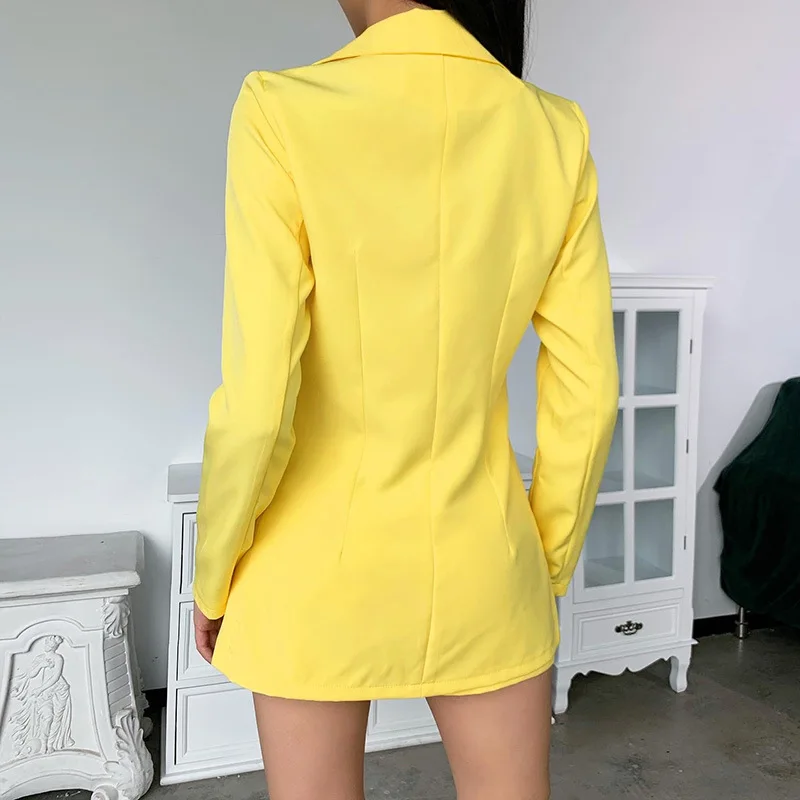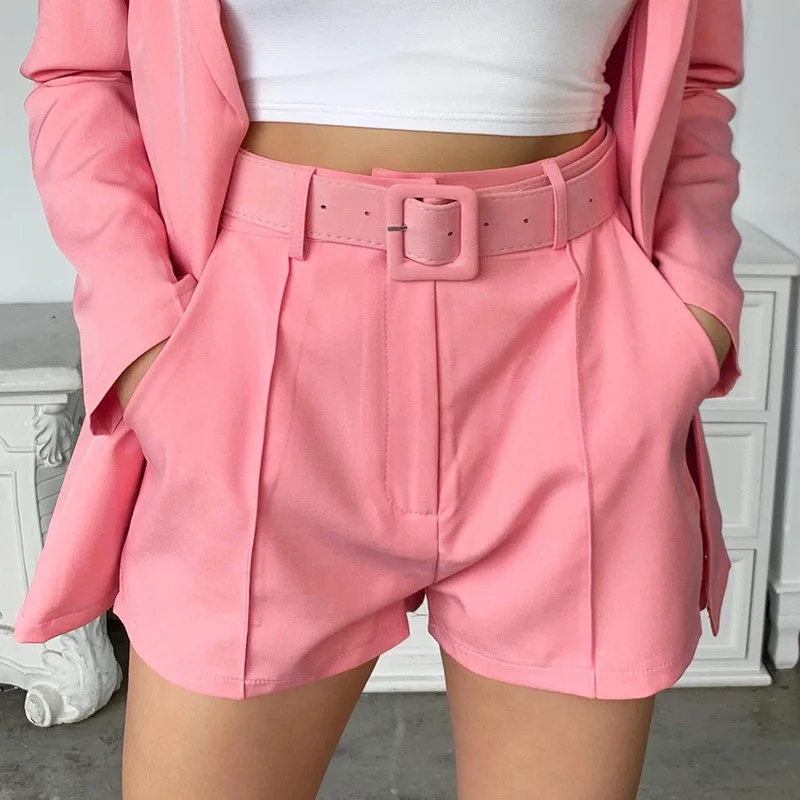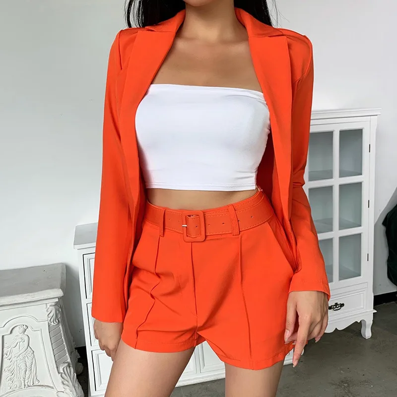 Женский костюм, пиджак, Шорты, модный неоновый Блейзер, элегантный осенний комплект из двух предметов, Офисная Женская официальная одежда, розовый, желтый костюм