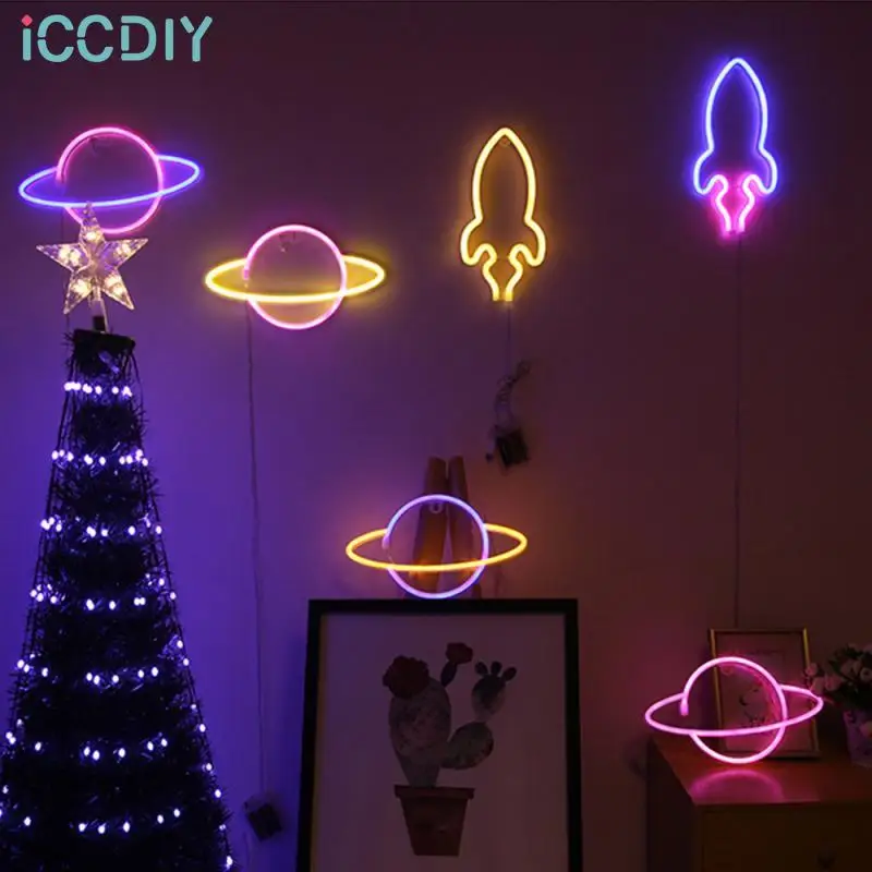 Светодиодный ная неоновая вывеска, настенная подвесная светодиодная вывеска Планета вечерние, панель Вселенной, настенный светильник с питанием от батареи, неосветильник, праздничный Декор