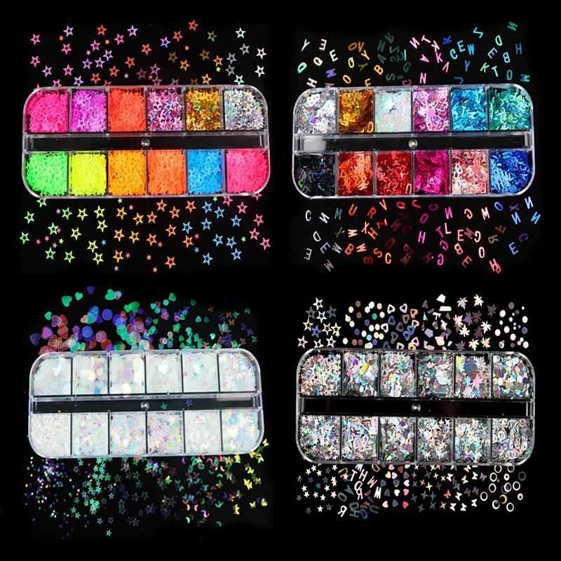 Полимерные Блестки для ногтей, 1 коробка, разные буквы, сердца, блестки для рукоделия, наполнитель для форм из УФ-смолы, наклейки для ногтей, инструменты для изготовления украшений