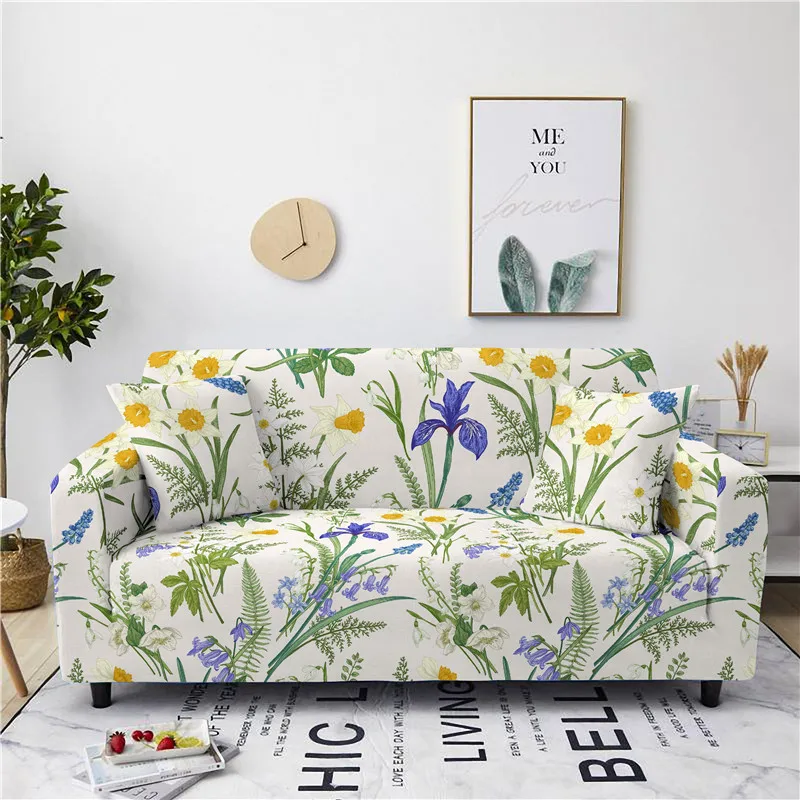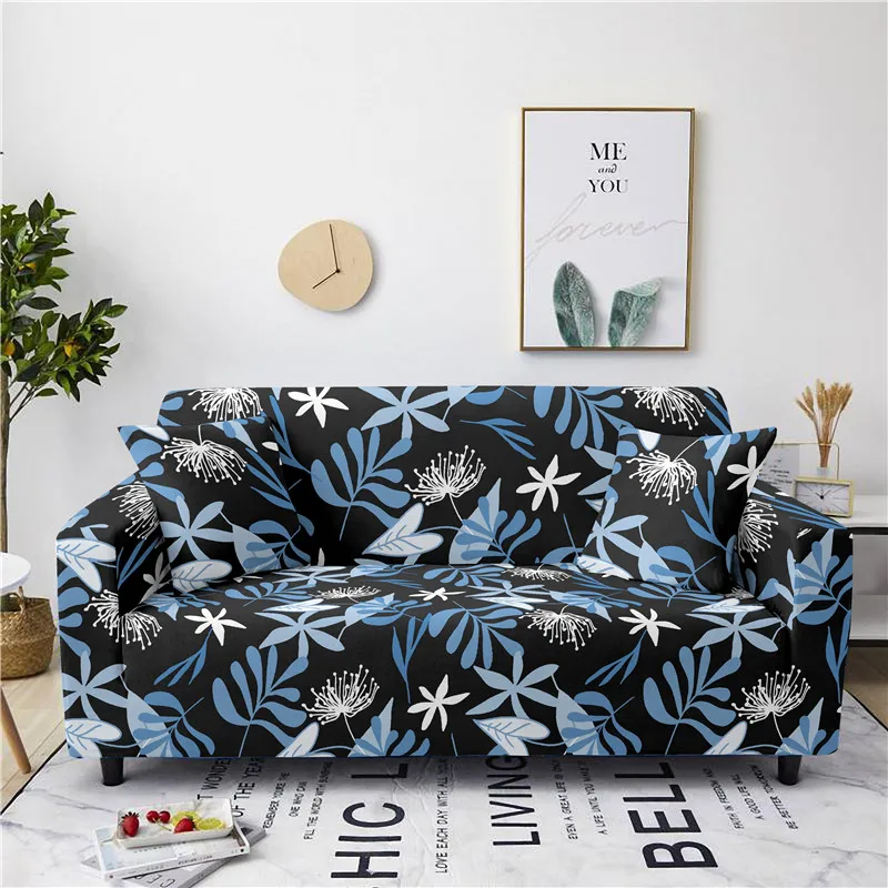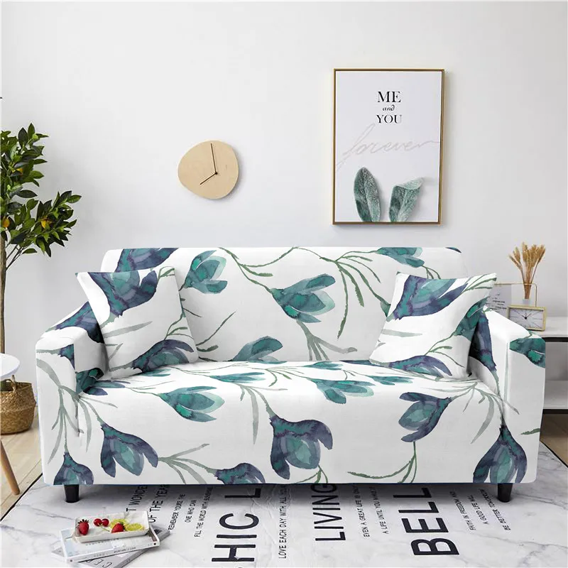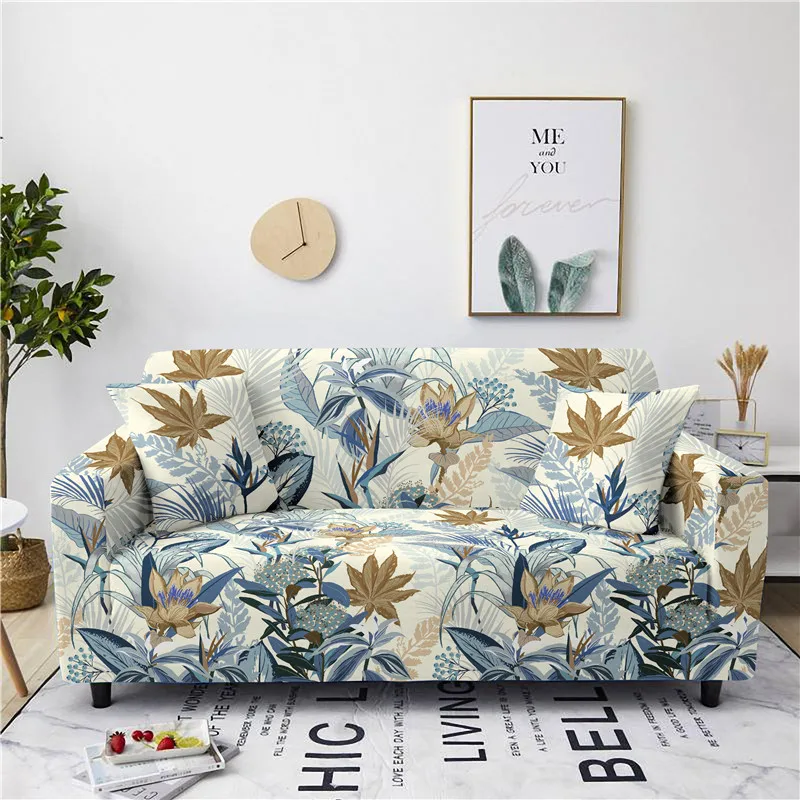 Угловой чехол для дивана в форме листа для гостиной, украшение для мебели с цветочным узором Protector, секционный L-образный чехол, Эластичный чехол для дивана