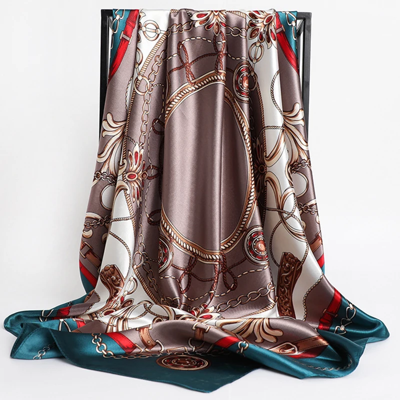 Новинка 2021 г., квадратные шелковые шарфы 90 х90, Женский пылезащитный платок, корейские Популярные шали с принтом, Летний Пляжный солнцезащитный платок
