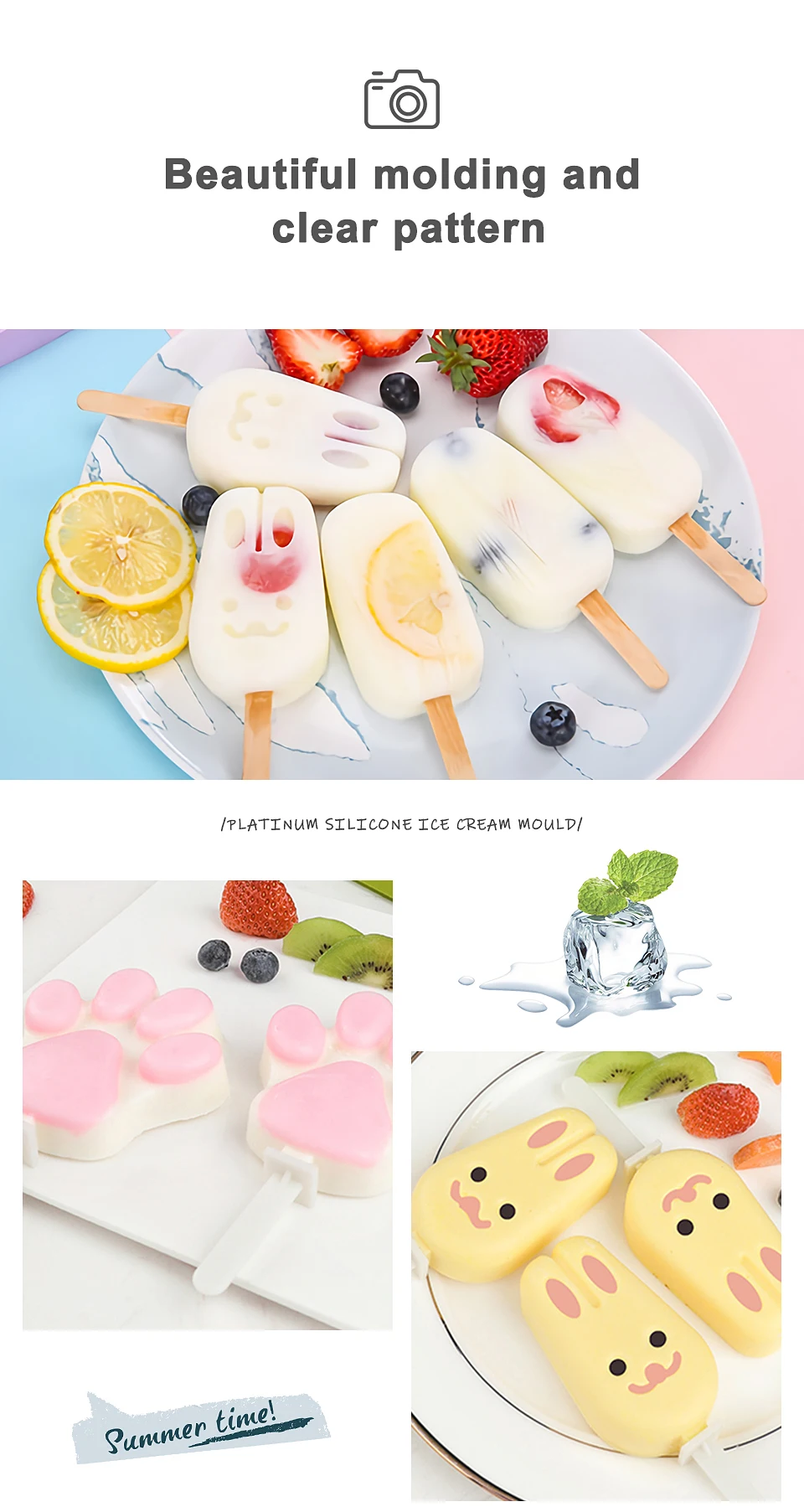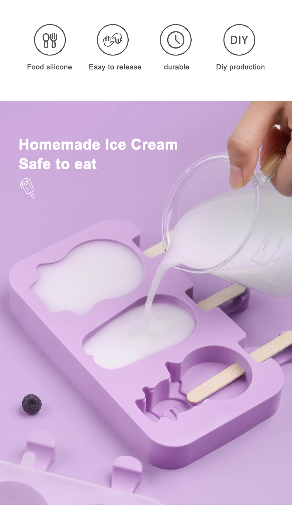 Особенности:100% абсолютно новый и в хорошем состоянииПищевая силиконовая форма для мороженого, креативные формы, нетоксичные, хорошие для здоровьяНизкая температура и высокая термостойкость, мягкие и эластичные.Высокая температура до 230 градусов, низкая температура до-40 градусов.Подходит для мороженого, мороженого и кубика льда, торта и т. д.