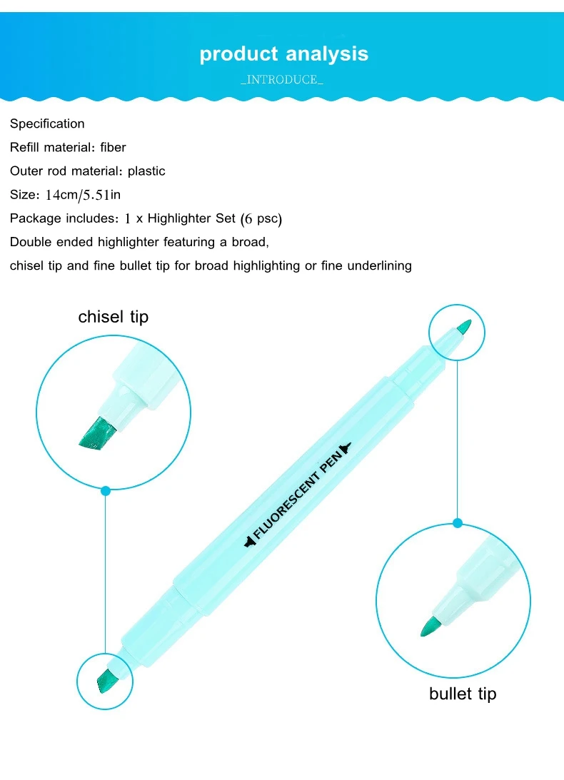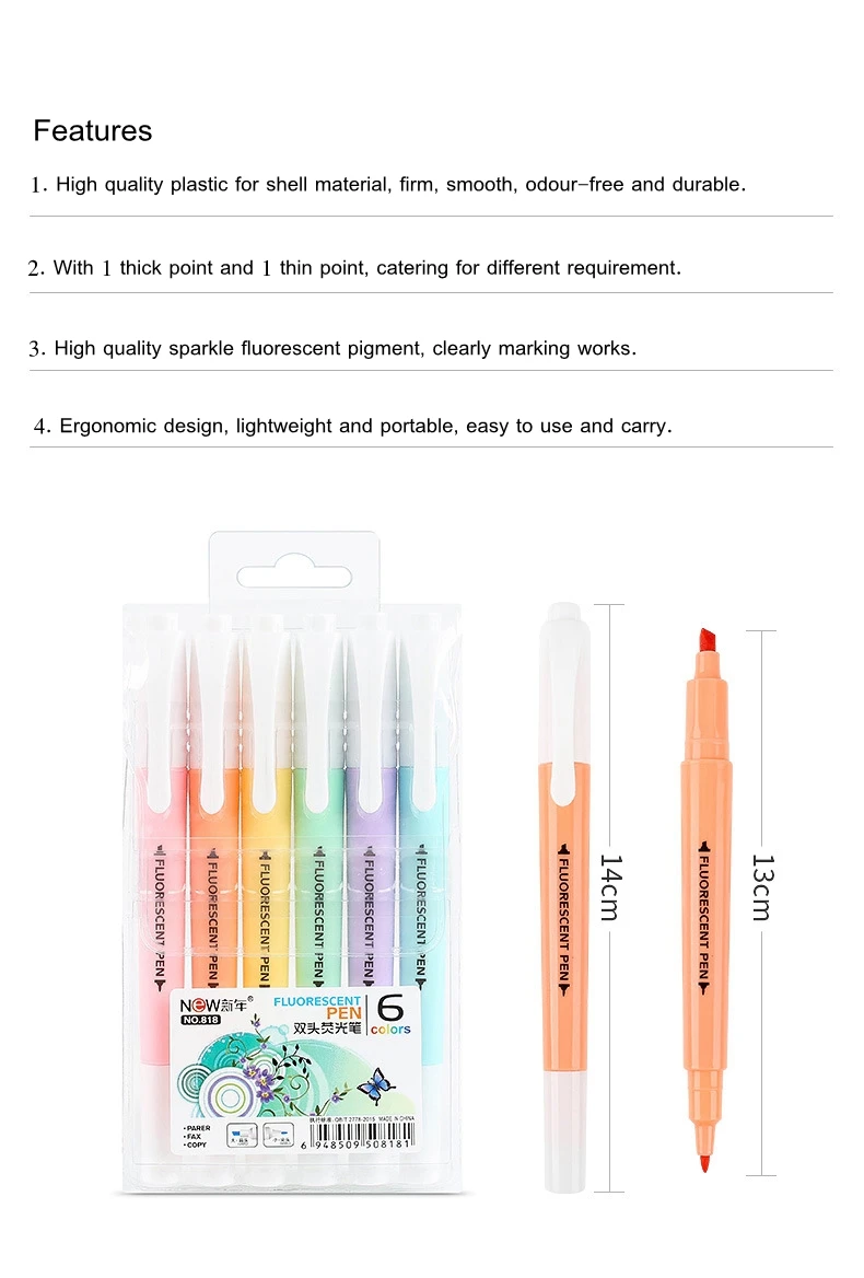 Флуоресцентный маркер, двойная головка, 6 шт.компл., маркеры для ри...
