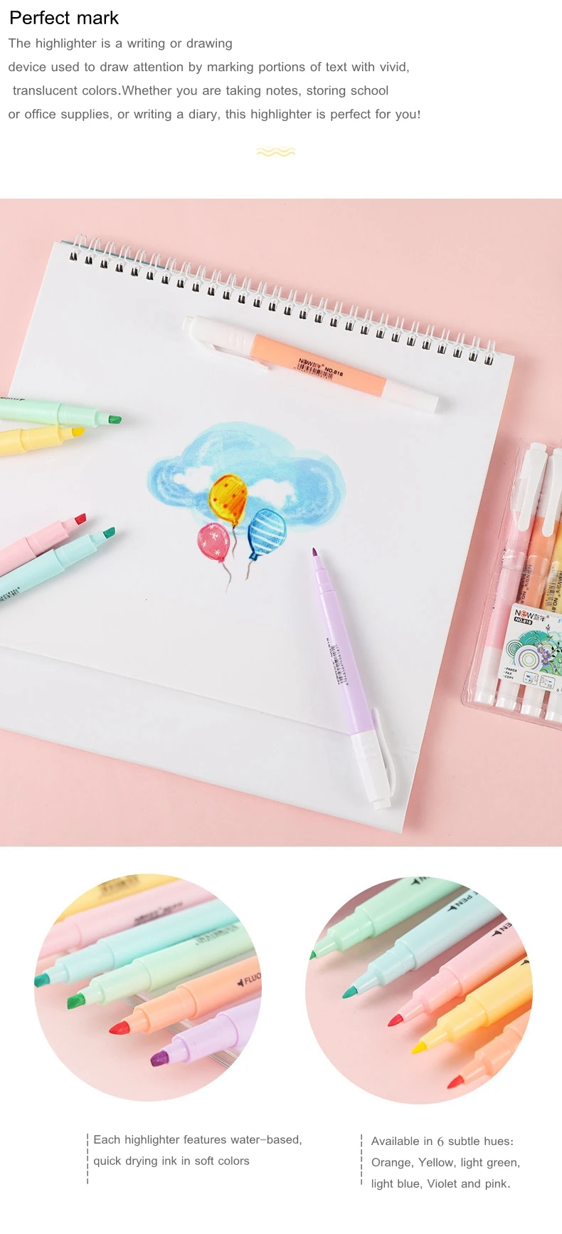 Маркеры флуоресцентные 6 шт.набор, двусторонние, милый маркер, Канц...