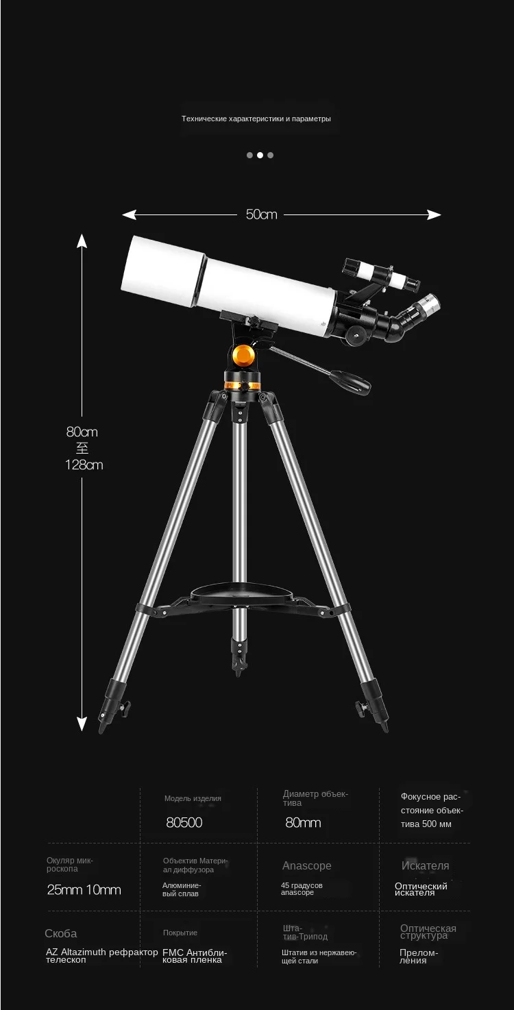 Телескоп 2020 с апертурой 80 мм и сумкой для переноски, 500 мм