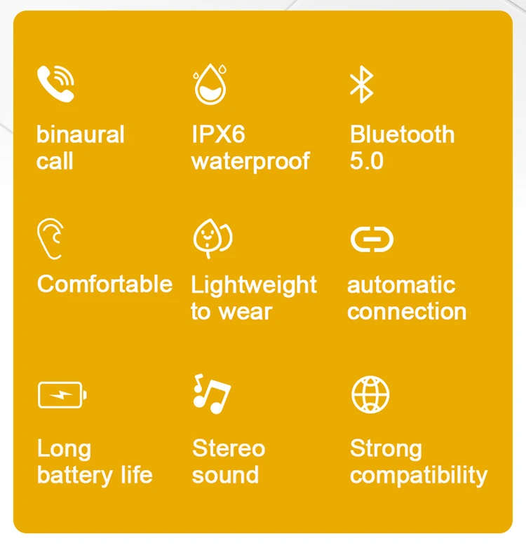 TWS, беспроводные bluetooth-наушники, музыкальные водонепроницаемые спортивные наушники подходят для Huawei, Iphone, OPPO, Xiaomi,