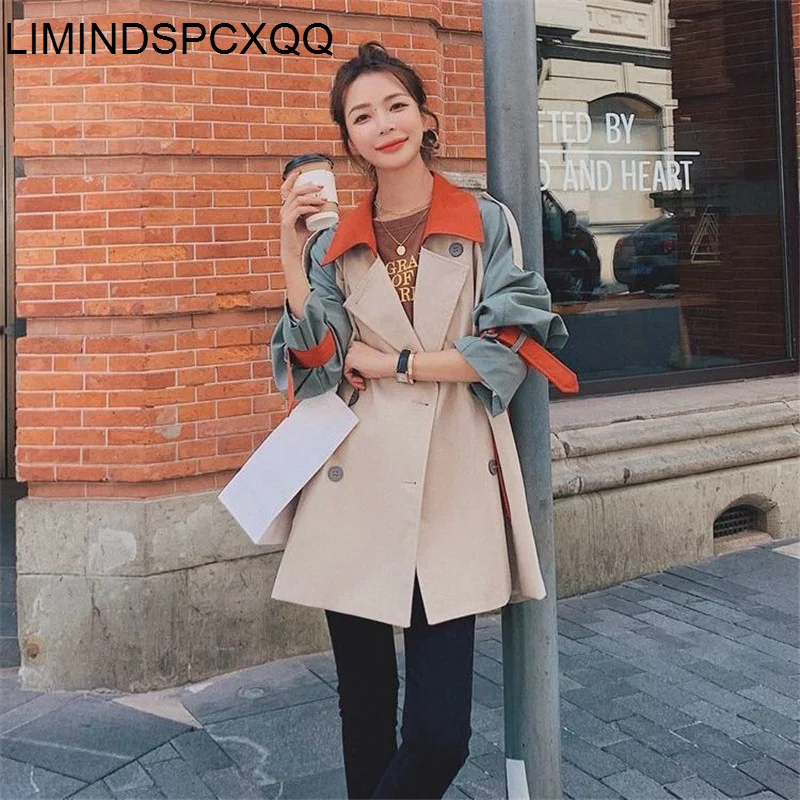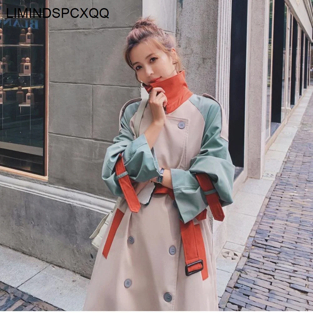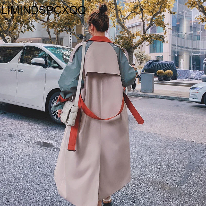 Женская Длинная ветровка в британском стиле, длинное Свободное пальто в Корейском стиле с поясом, подходящего цвета, весна-осень 2021