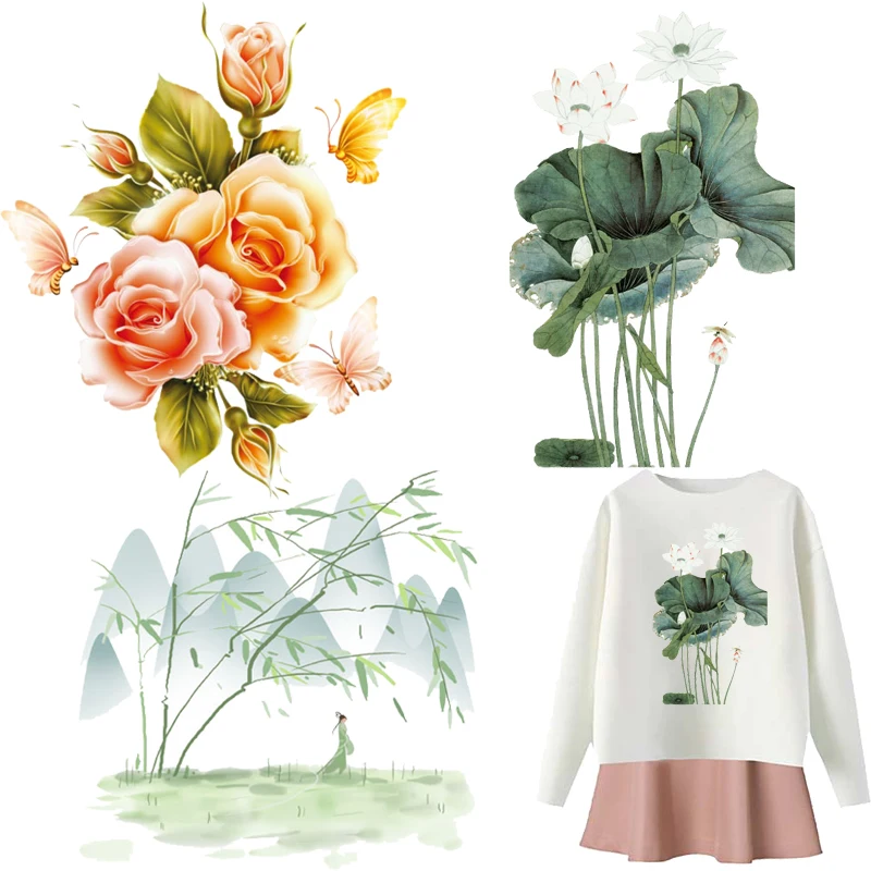 Цветок лотоса, тепловые нашивки, виниловые наклейки на одежду, ткань, термоклейкие переводы для одежды, патч аппликация «сделай сам»