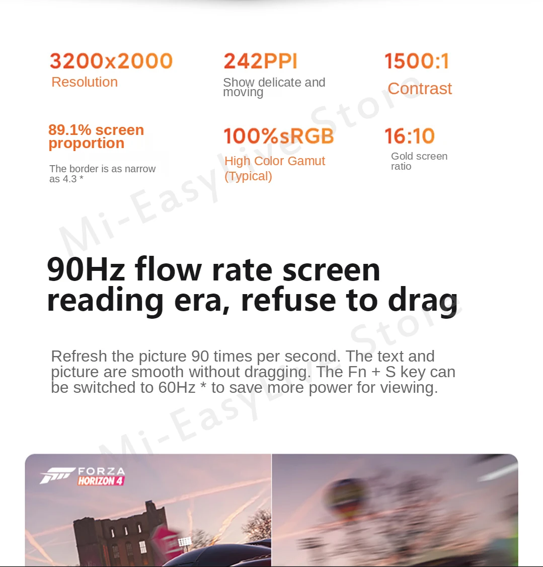 15,6 "супер Retina полный ЭкранРазрешение 3200x2000242PPI, 4,3 мм узкий ободок *, 89.1% соотношение между экраном и корпусом *,16:10 соотношение дисплея, жесткий экран высокой четкости с антибликовым покрытием, угол обзора 178 °,Яркость 300 нит (типичное значение), коэффициент контрастности 1500:1 (типичное значение),Частота обновления 90 Гц (Заводское значение по умолчанию), FN + S может переключаться между 90 Гц и 60 Гц, 100% цветовая гамма sRGB (типичное значение), поддержка затемнения постоянного тока,Прошел немецкую сертификацию Rheinland TuV на низком уровне оборудования Blu-Ray