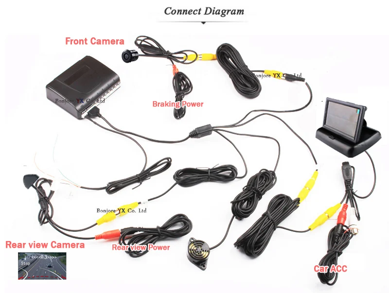 Когда вы тормозите, передний датчик и Передняя камера будут вместе --- передние датчики расстояния и изображения будут отображаться на экране