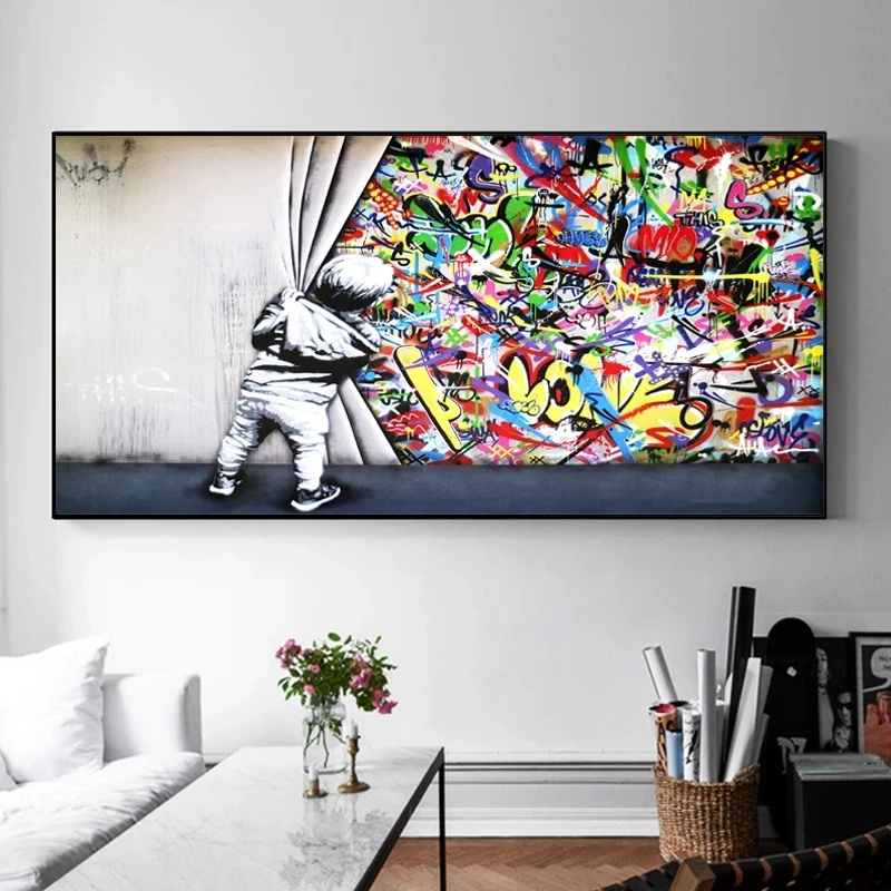 Бэнкси арт Граффити мальчик холст картина за занавеской стены художественные плакаты принты стены картины для гостиной домашний Декор стены