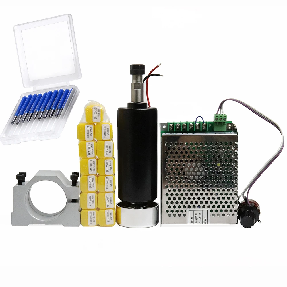 500 Вт шпиндель с воздушным охлаждением ER11 патрон CNC 0,5 кВт мотор шпинделя + 52 мм зажимы + регулятор скорости электропитания для DIY CNC