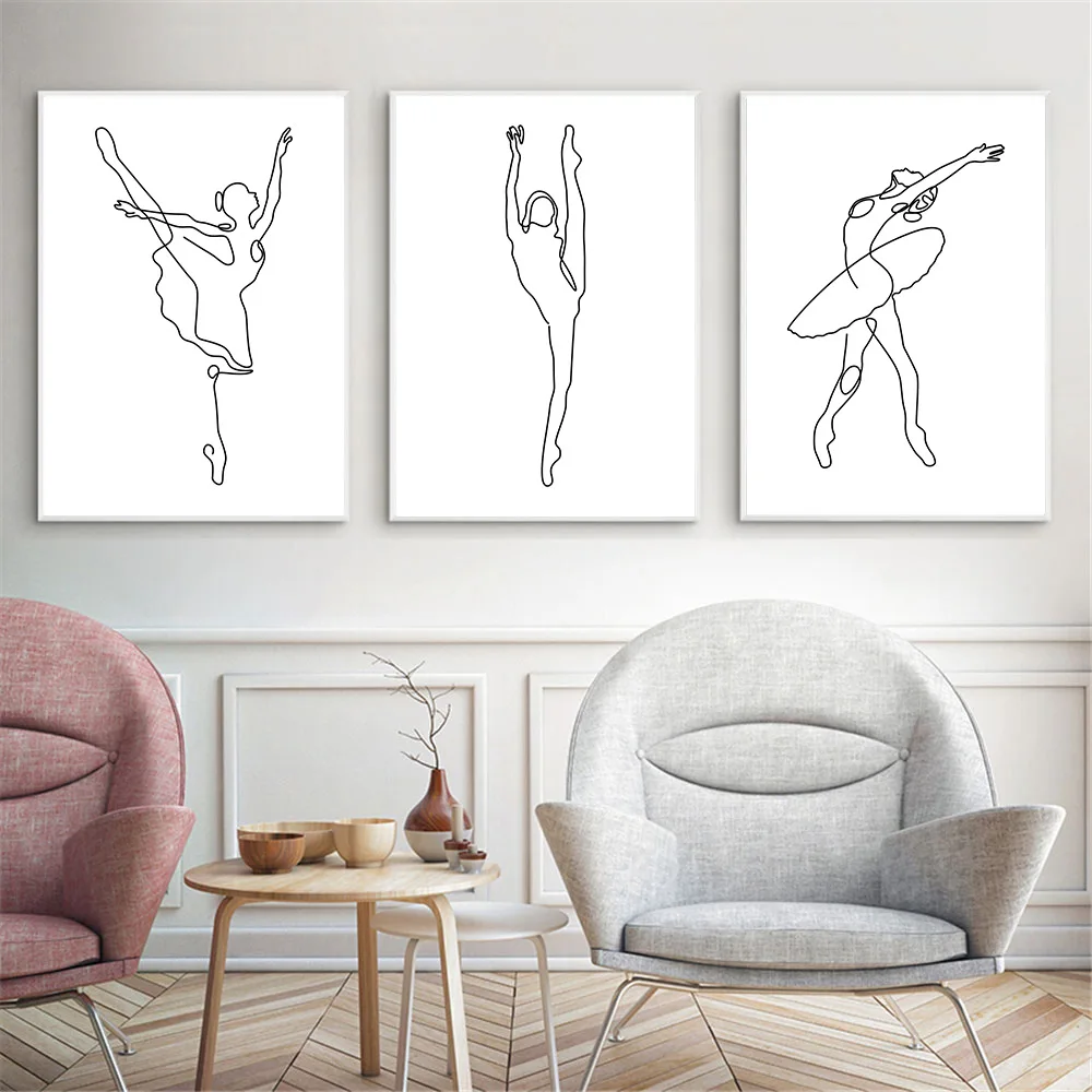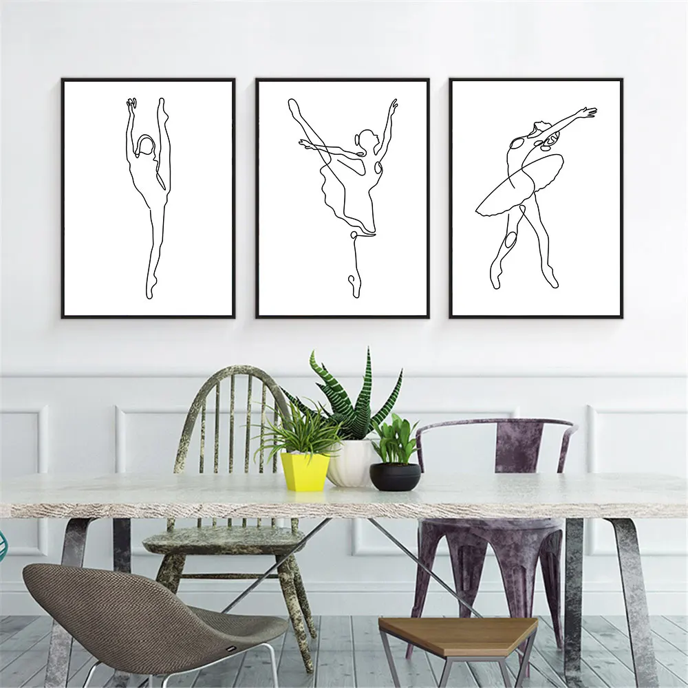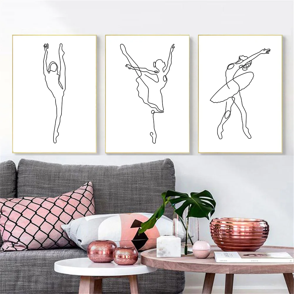 Минималистичный абстрактный Рисунок балерины для девочек, рисунок на стену, художественный плакат на холсте, картина, настенные картины в скандинавском стиле, украшение для дома