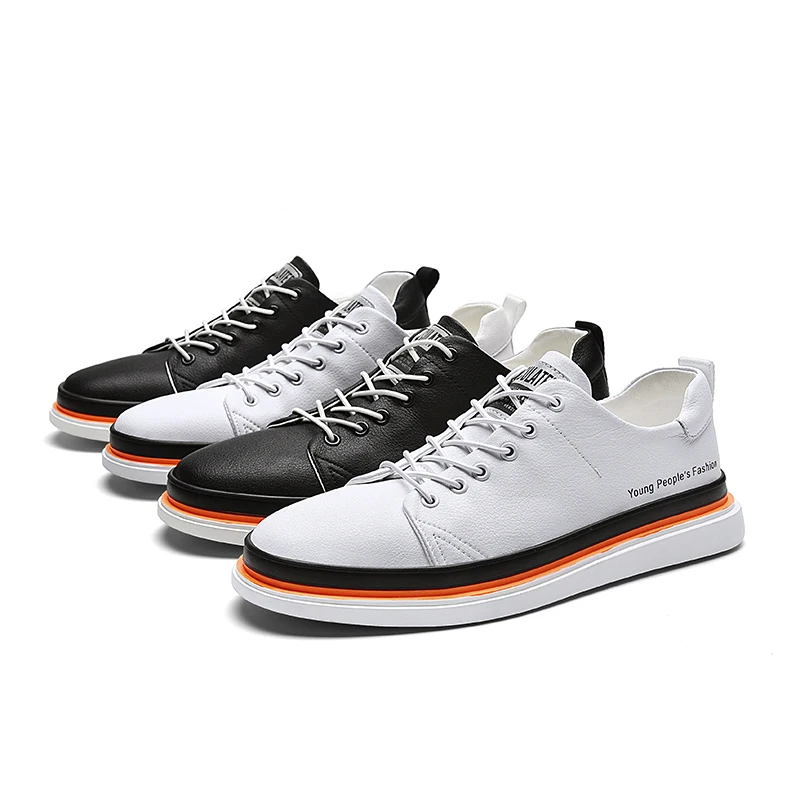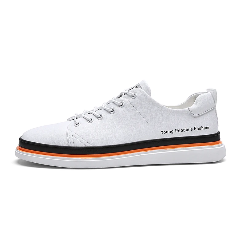 Кроссовки мужские из натуральной кожи, дышащие, на шнуровке, плоская подошва, Повседневная теннисная обувь, белые