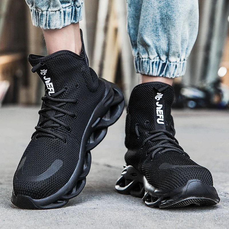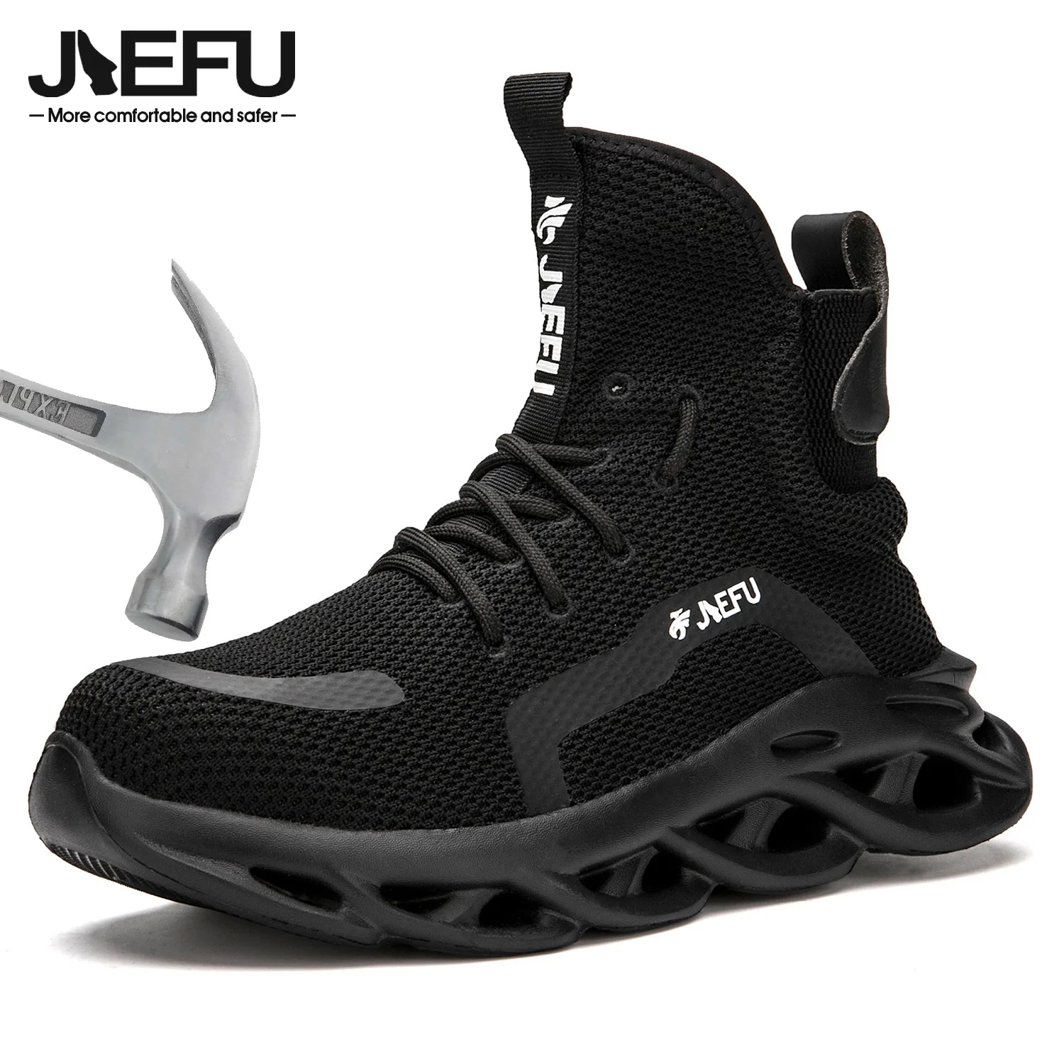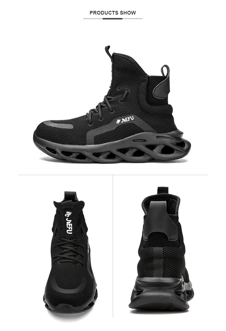 Рабочие ботинки JIEFU со стальным носком для мужчин, легкие, дышащие, Нескользящие, разрушаемые защитные ботинки для строительства
