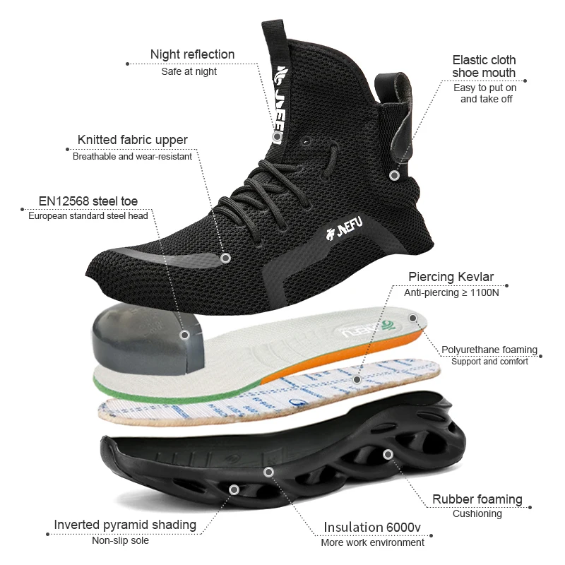 JIEFU/рабочие ботинки со стальным носком для мужчин; Легкая дышащая Нескользящая неразрушаемая защитная обувь для строительства