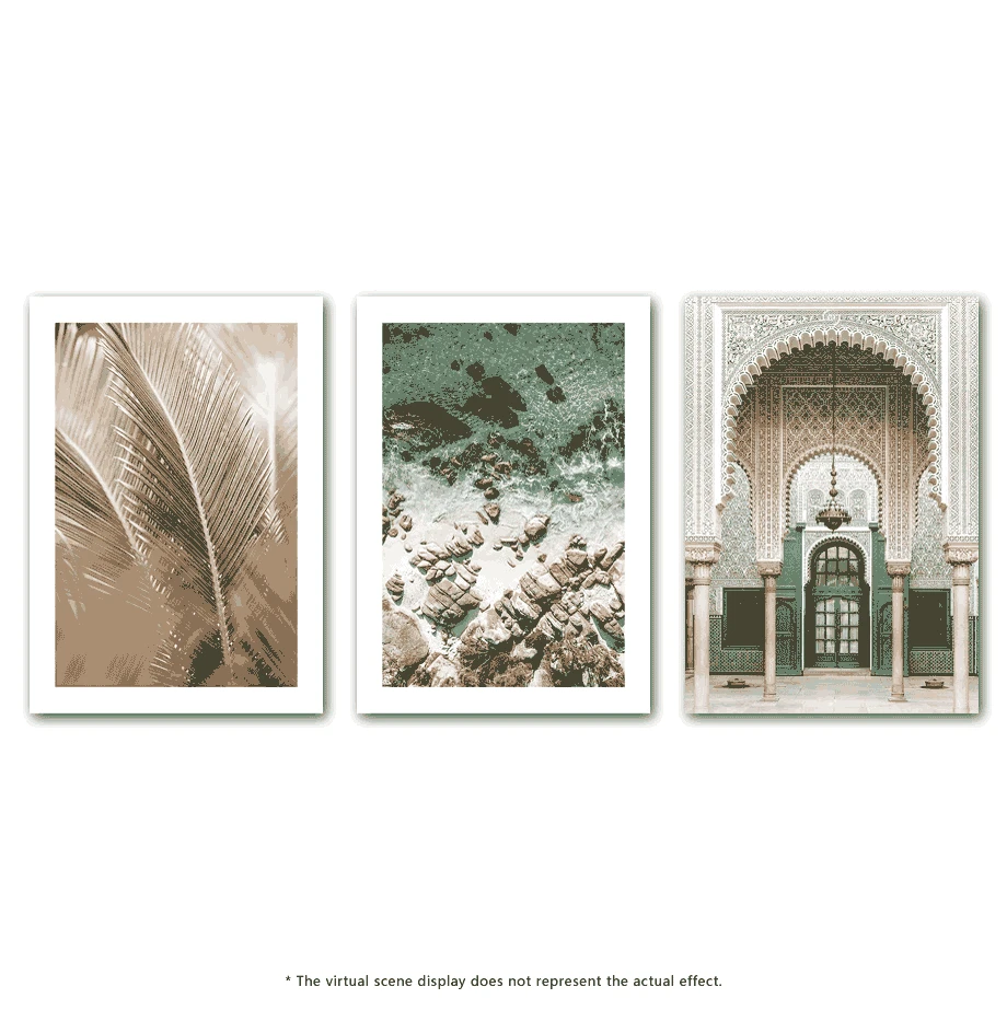 Постеры и принты в скандинавском стиле с изображением золотых пальмовых листьев храма и волн, настенная бумага, Картина на холсте, декоративные картины для гостиной