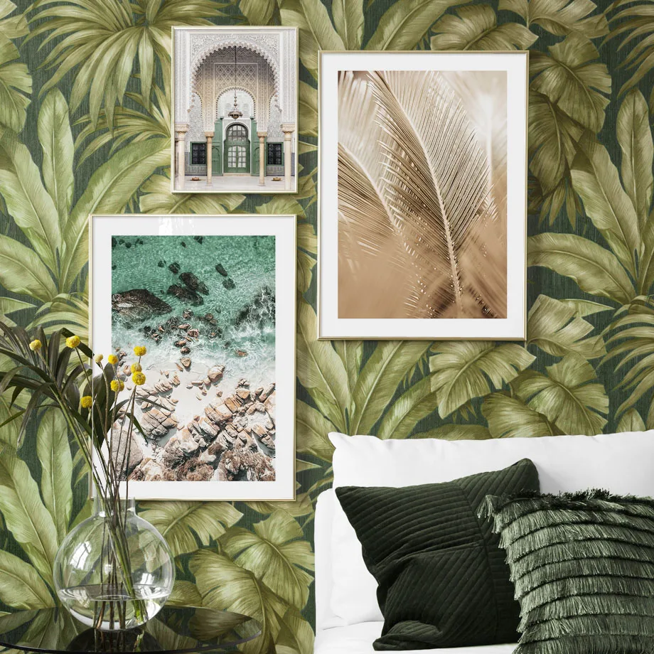 Плакат на холсте с девятью арками, зелеными резиновыми листьями бан...