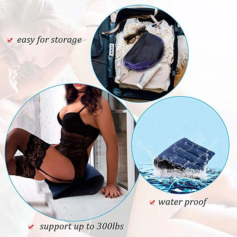 Использование: поддерживает тело под любым углом, идеально подходит для более глубокого проникновения и варьируется в положении, сохраняет вашу силу. Когда он сдувается, его можно сложить для хранения и легко носить с собой. Это будет удобно для автомобиля, дома, офиса и путешествий и т. Д.