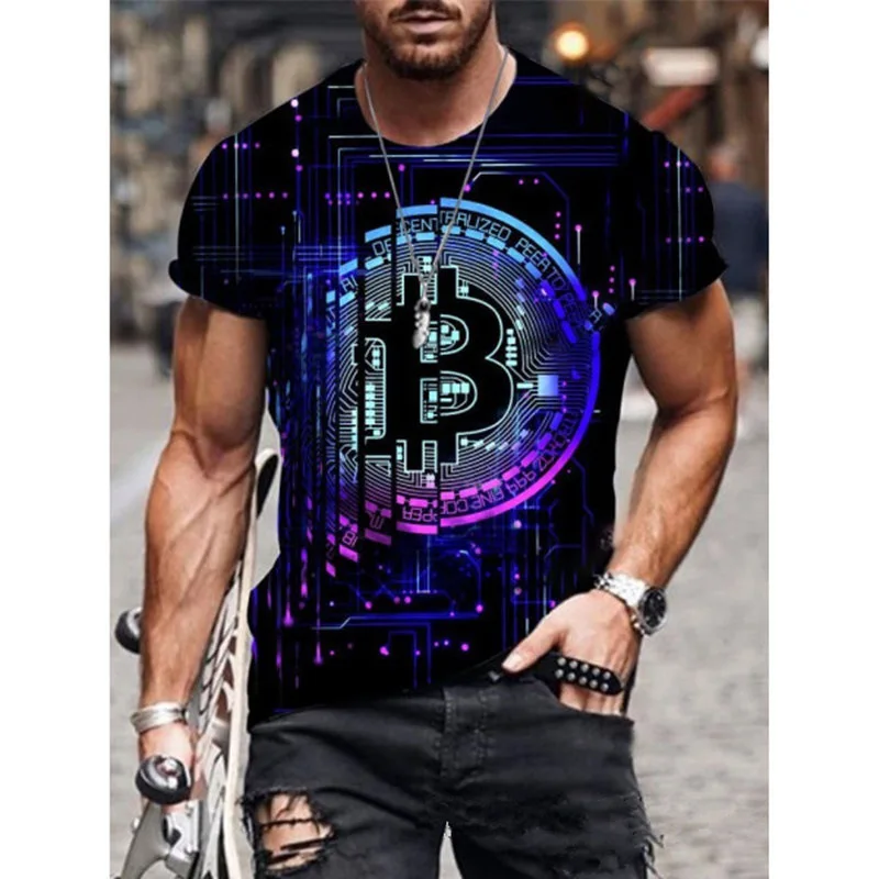 Мужская футболка с коротким рукавом и принтом биткоинов, свободная футболка с круглым вырезом, дышащая уличная одежда для отдыха и фитнеса в стиле хип-хоп, новинка 2021