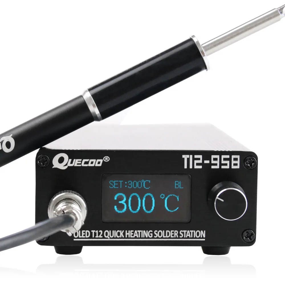 Паяльная станция QUICKO STM32 V3.1S T12, паяльная станция из алюминиевого сплава с OLED-матрицей и держателем для электроинструментов FX9501, с автоматическим сном, железные наконечники T12