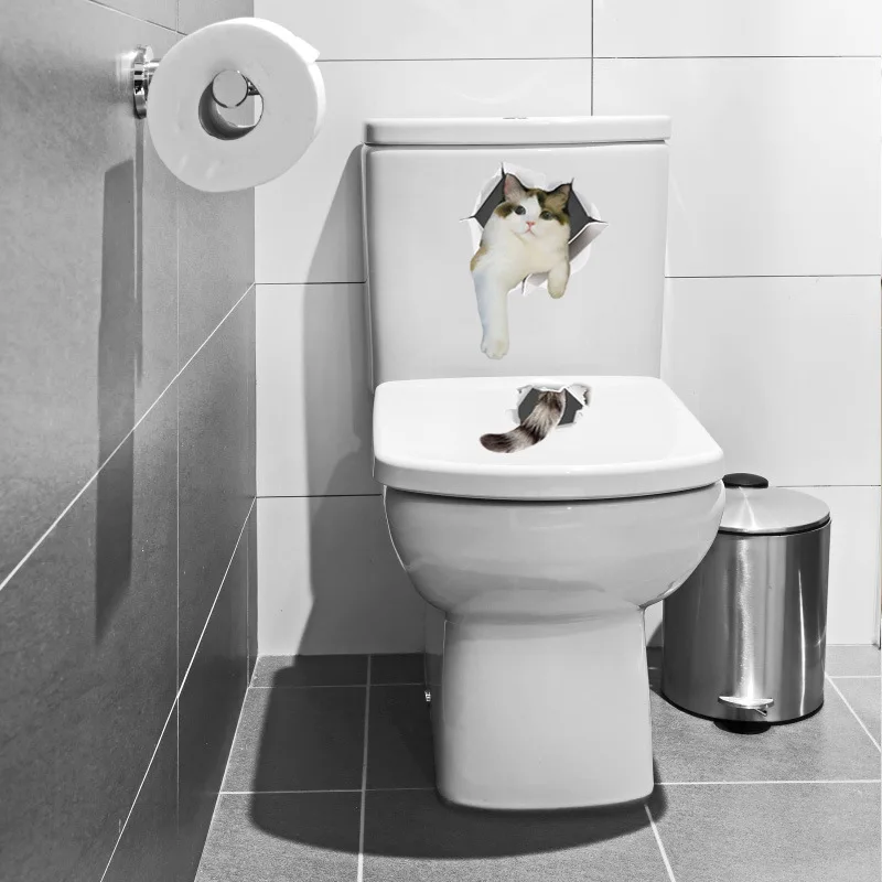 Яркая 3D наклейка на стену в виде кошки, наклейка на крышку унитаза...