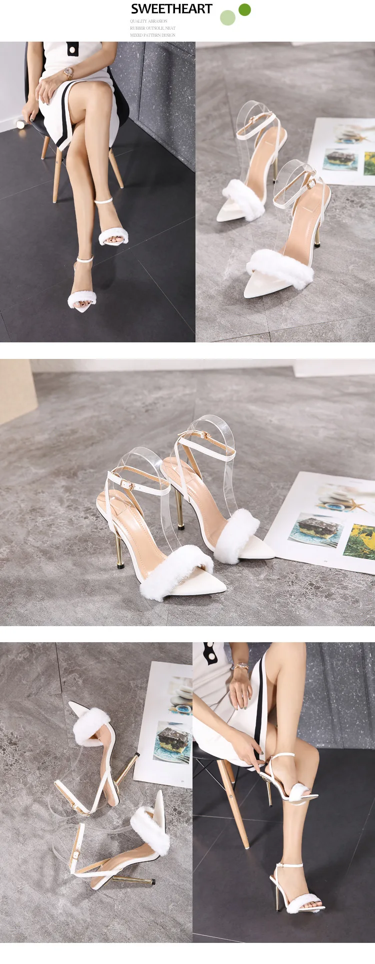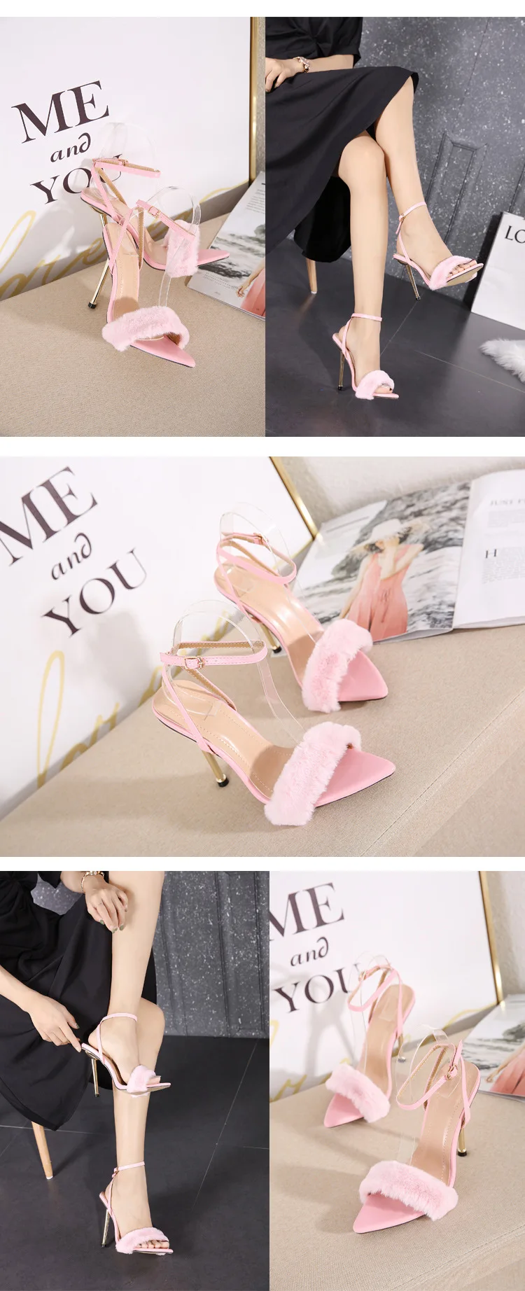 Женские босоножки на высоком каблуке, розовые или белые Босоножки с открытым носком, на меху, обувь для стриптиза, для свадьбы, Новинка лета 2021