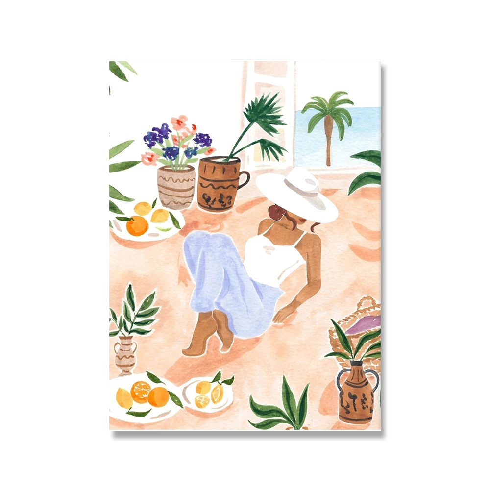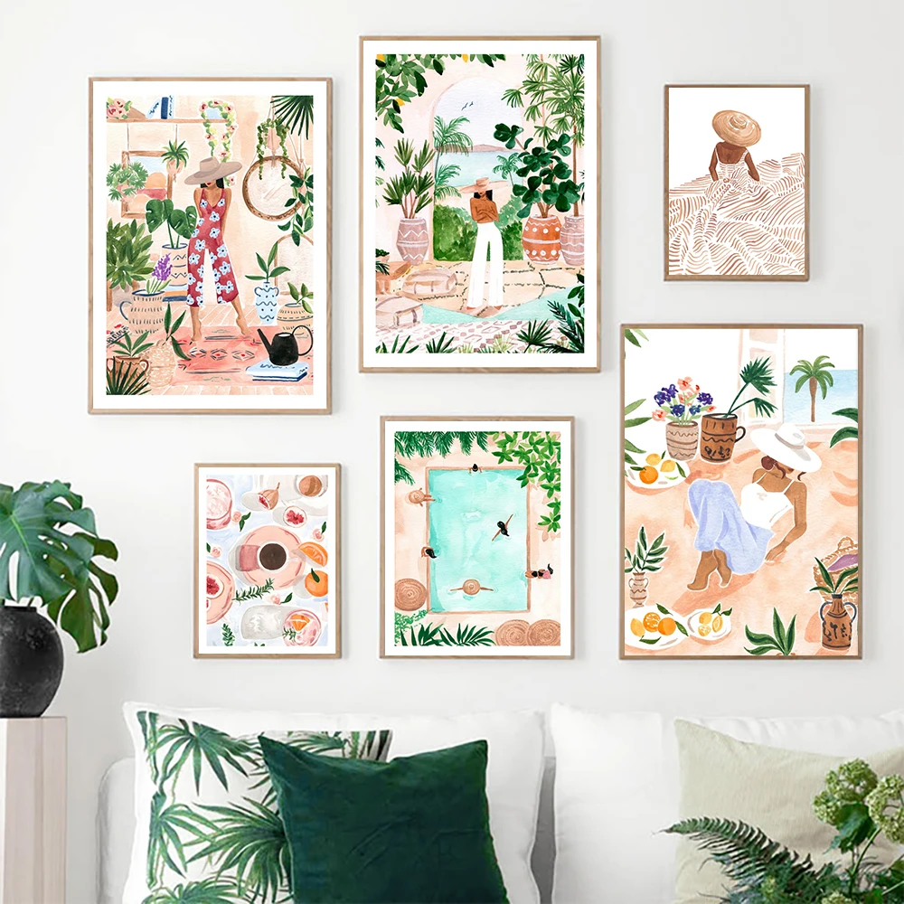 Абстрактный постер в стиле бохо с изображением марокканских растений, модная женская Картина на холсте, тропическая живопись, Скандинавская Настенная картина, декор для гостиной