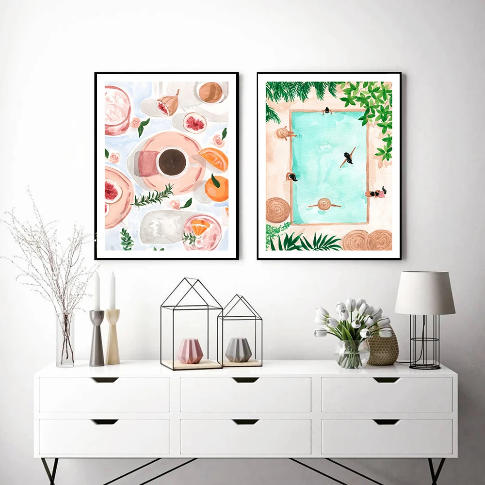 Постеры с изображением еды в ретро-стиле, абстрактные картины на хо...