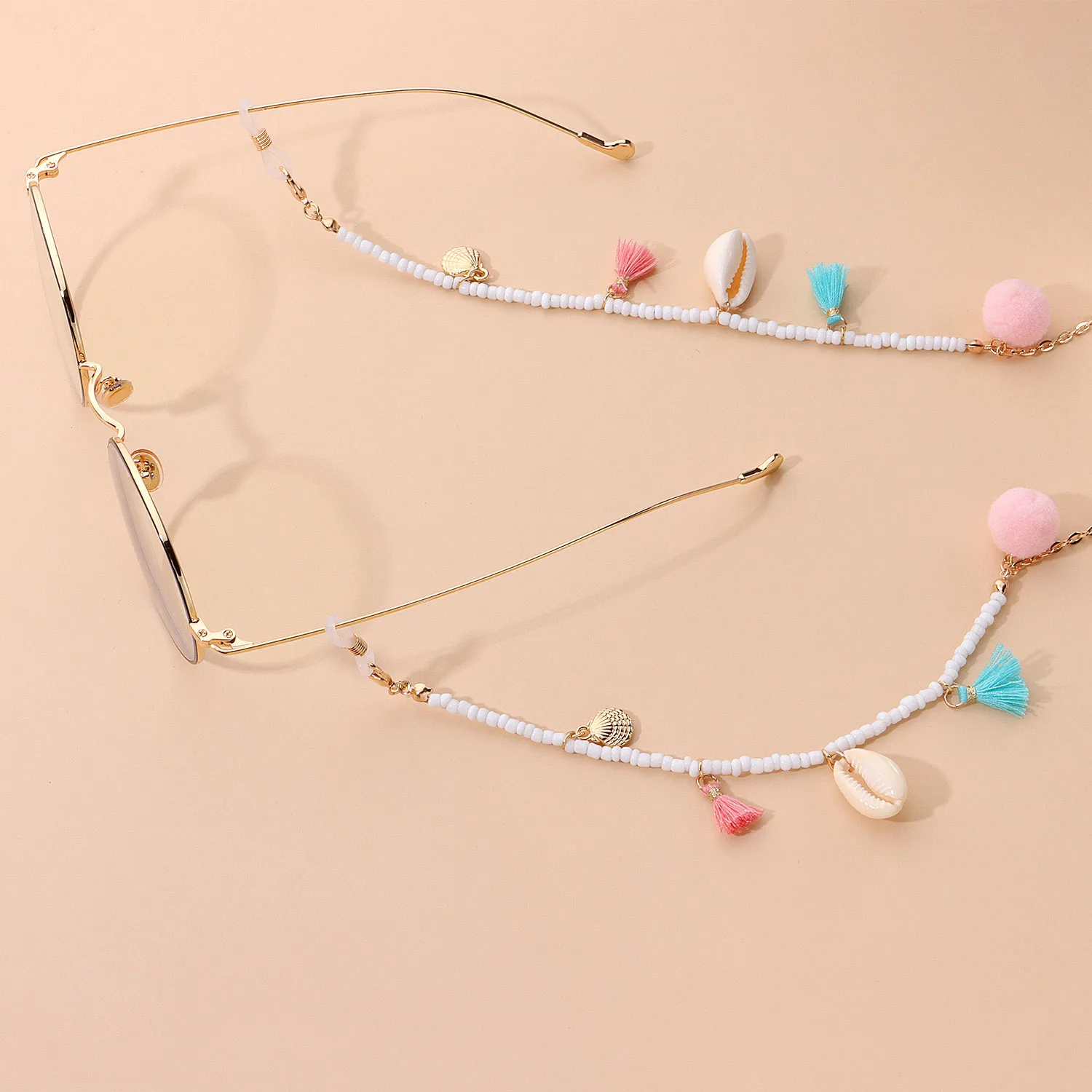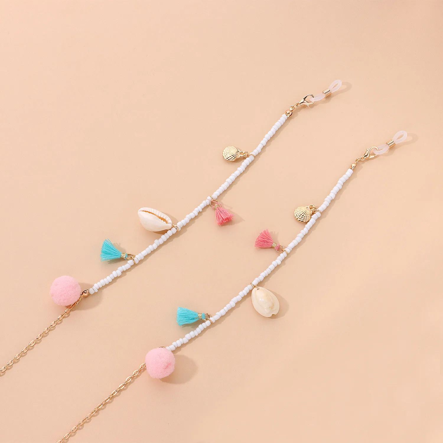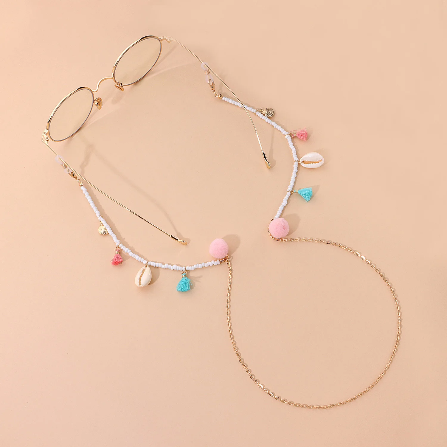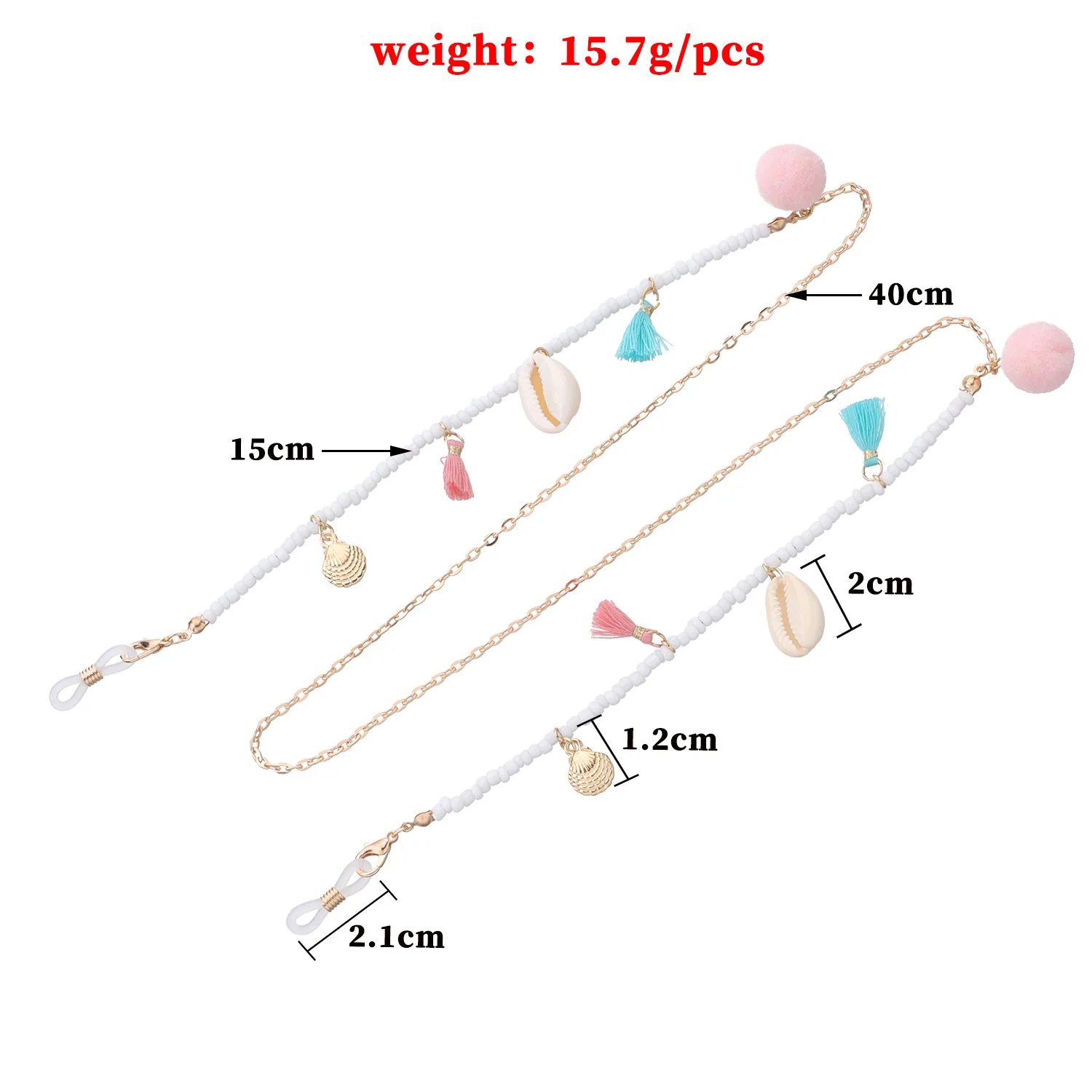 Богемное летнее бусины маска ремень для гонок солнечные очки цепь Женская Золотая цепочка с ракушками и с бахромой для чтения шнурок для очков шнурки ожерелье