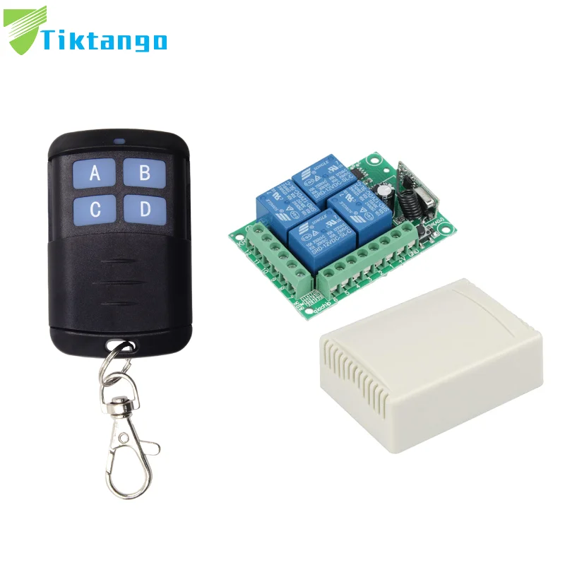 Tiktango Универсальный Беспроводной дистанционного Управление выключатель ACDC 12V 4CH релейный Переключатель приемника модуль + 4 канальный РЧ пульт дистанционного управления передатчика "сделай сам"