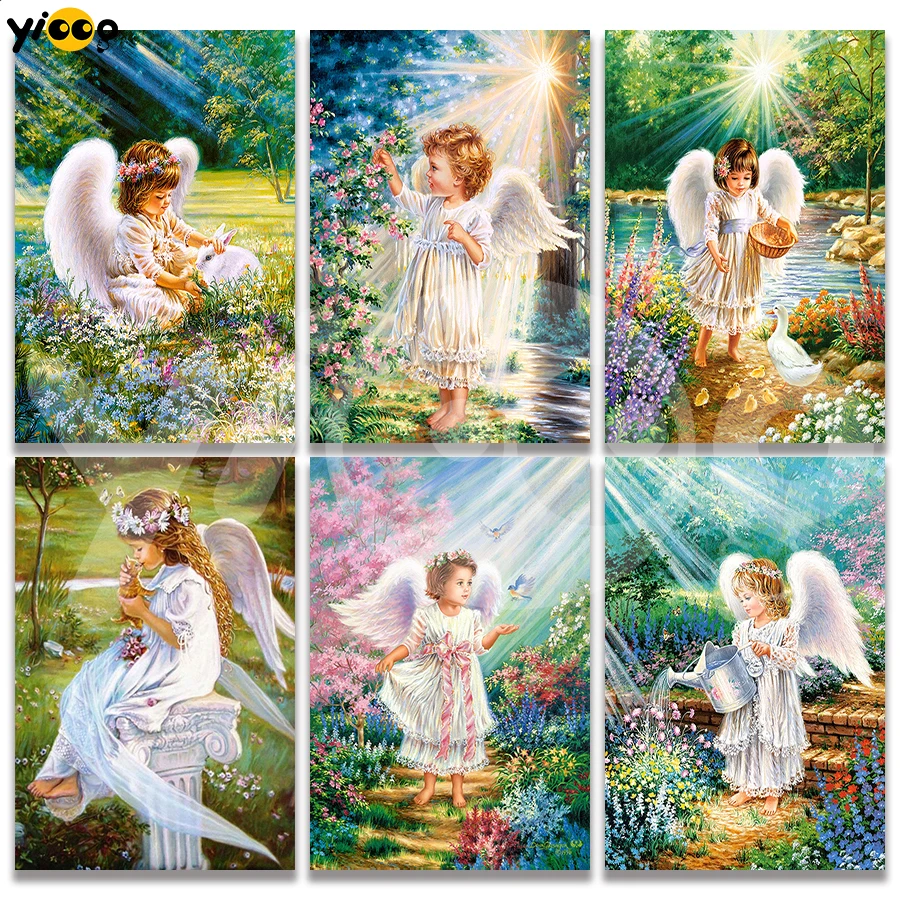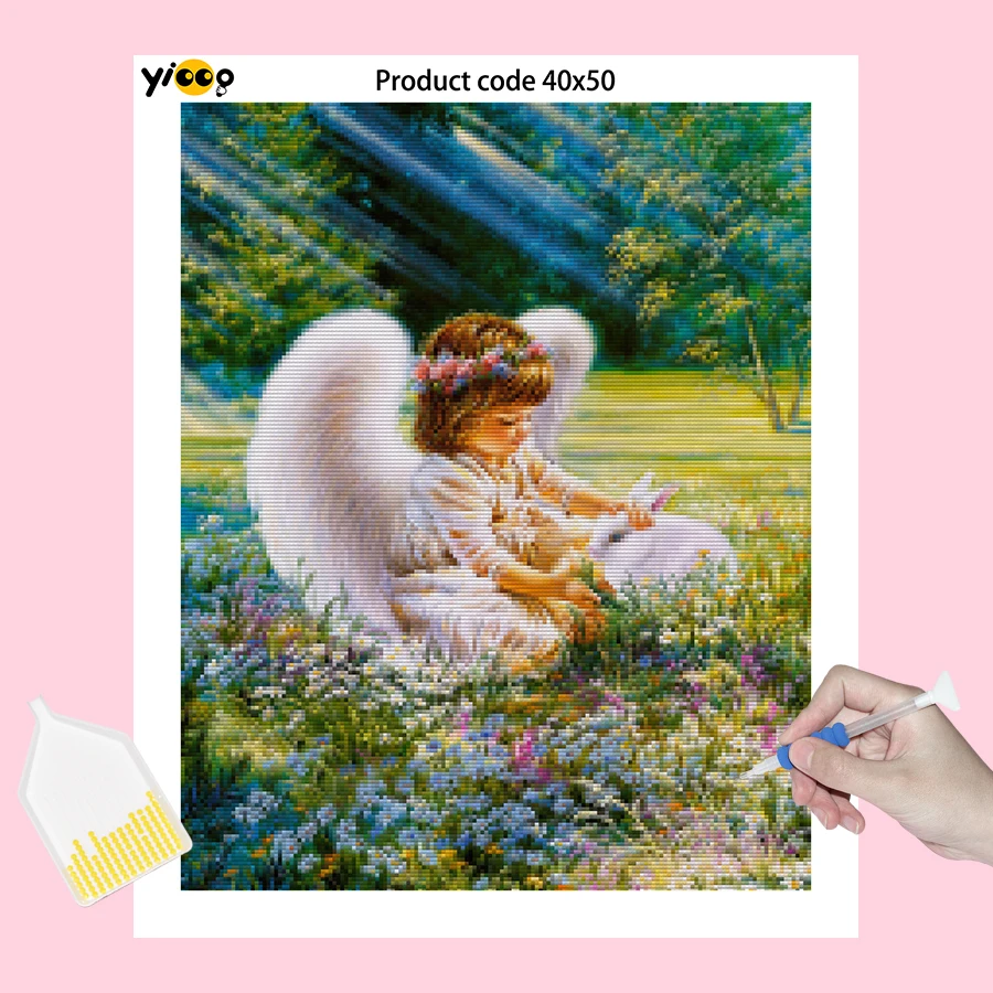 Алмазная вышивка Ангел в саду, полноразмернаяКруглая Мозаика стразы, вышивка крестиком, декоративный подарок TY81