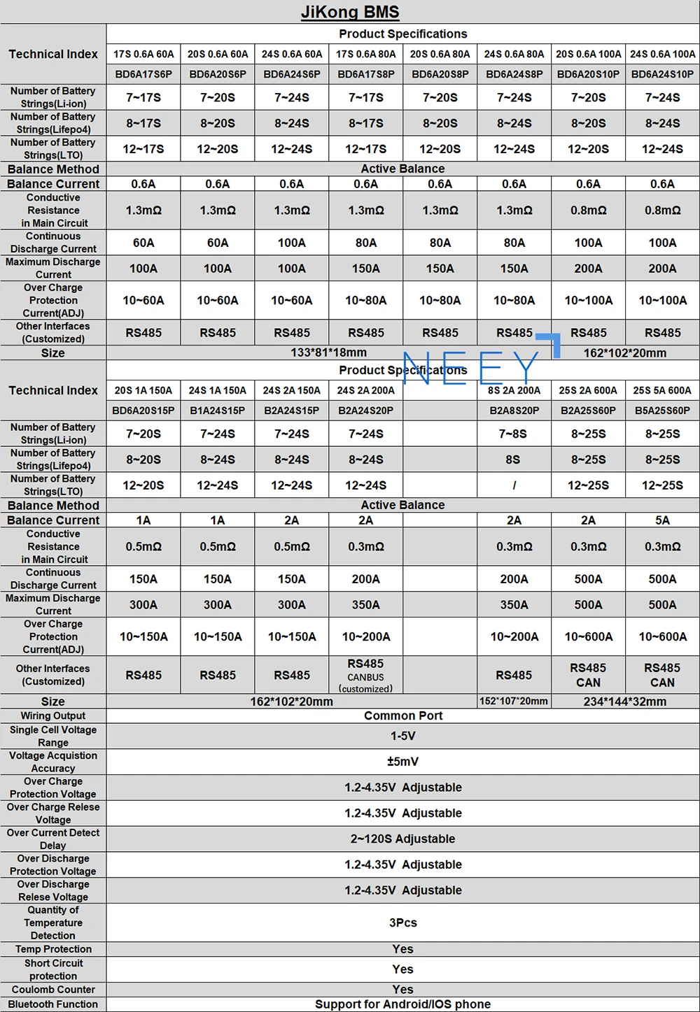 Активный баланс Bms 150A, CANBUS Rs485 BT 36 в 48 в 60 в, литий-ионный аккумулятор 18650, хранилище батарей lifepo4, JIKONG 2A