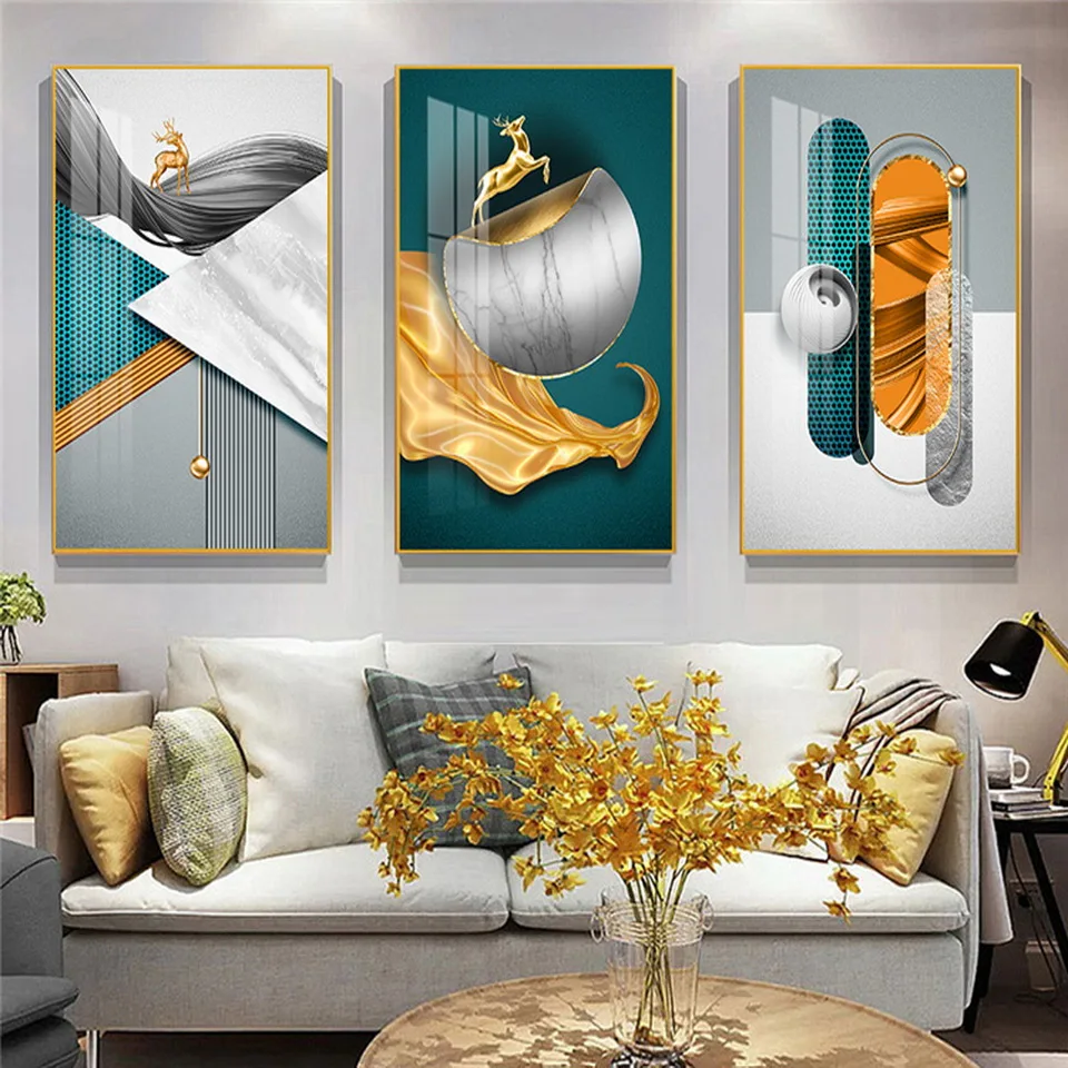 Геометрические Животные голова оленя настенная живопись холст карти...