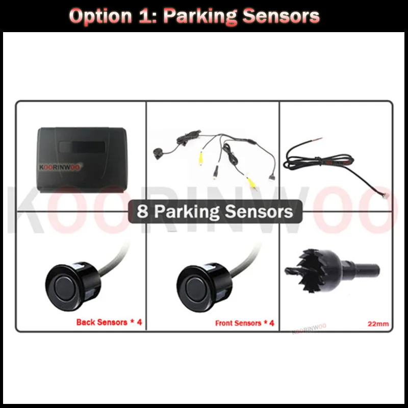 8 датчиков, двухъядерная парковочная радарная система заднего хода (расстояние парковки может отображаться на автомобильном мониторе)