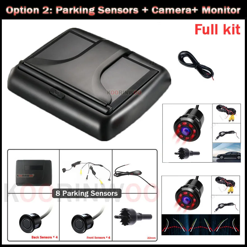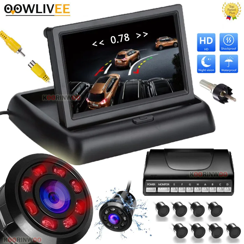 Парктроник OOWLIVEE, 8 датчиков, радар-детектор 22 мм, звуковая система, зуммер 12 В, с камерой + монитором, двойным обзором спереди и сзади