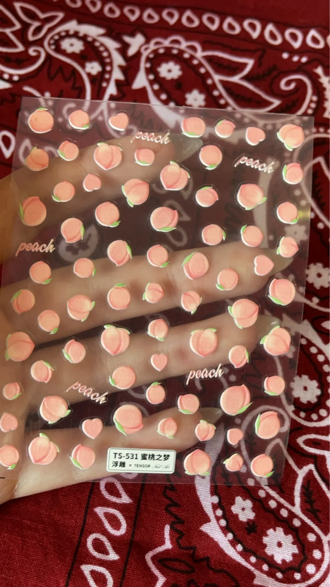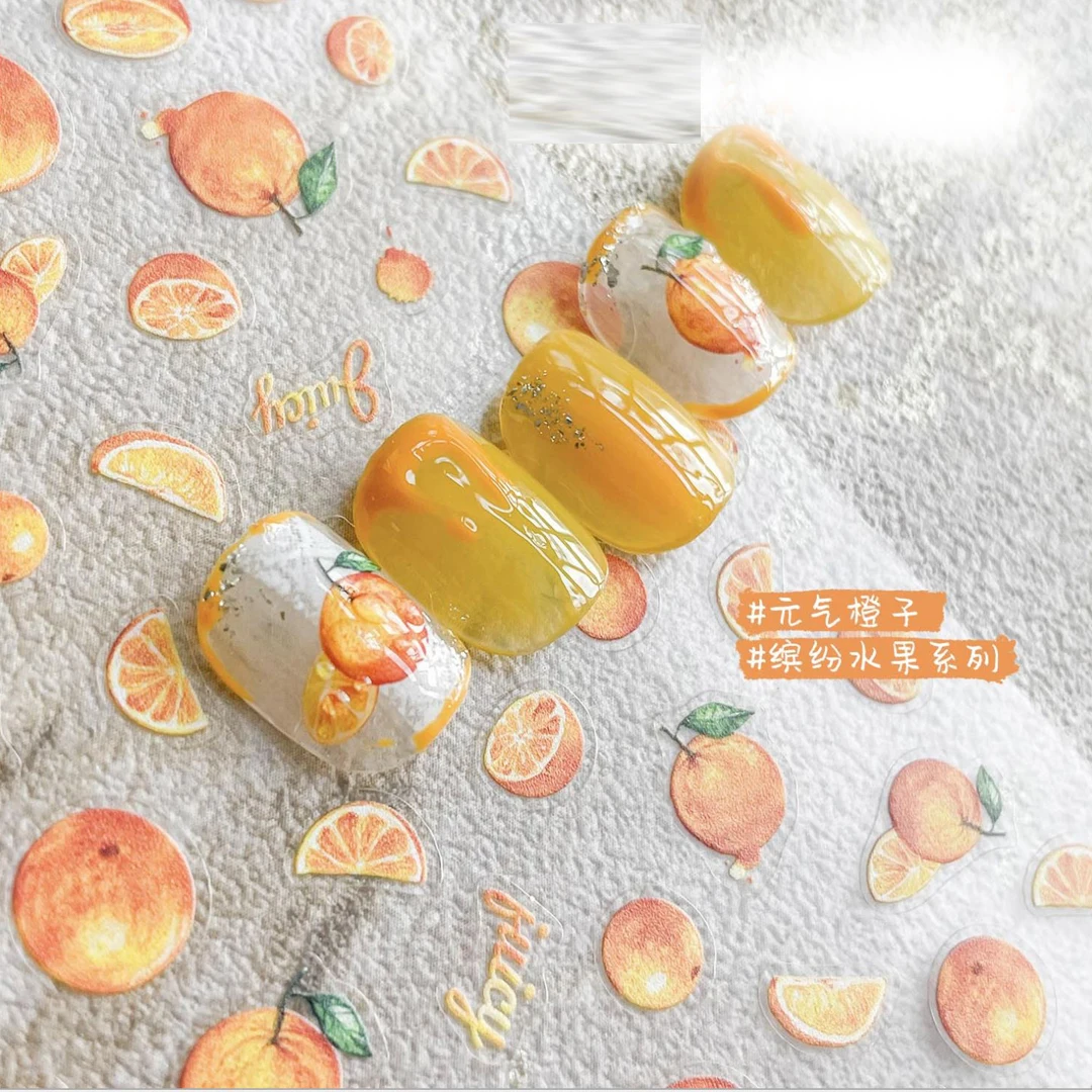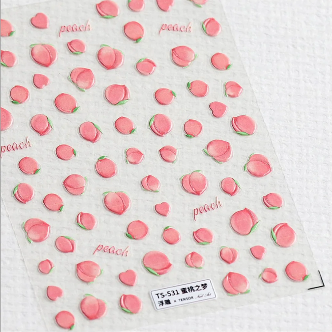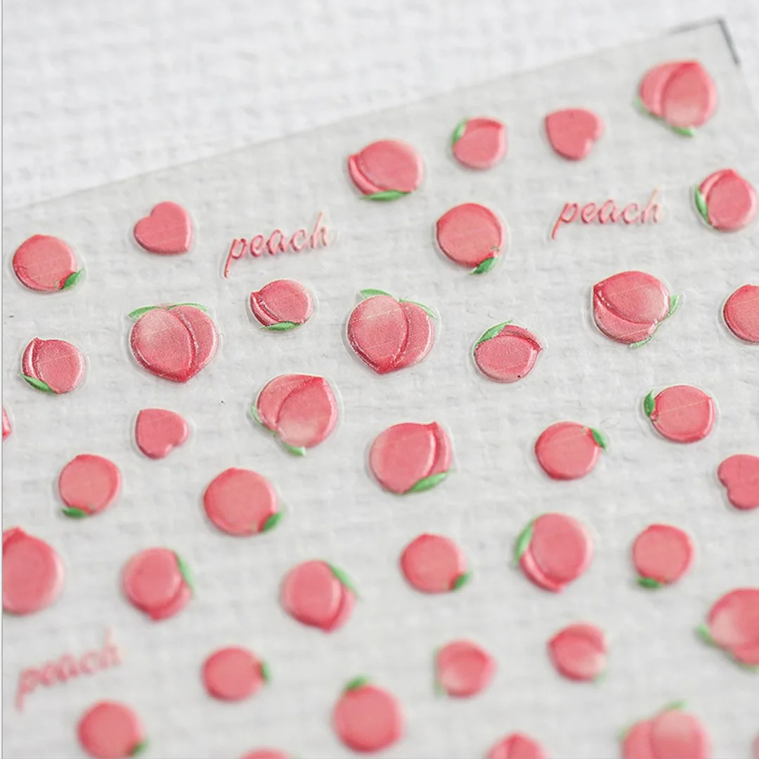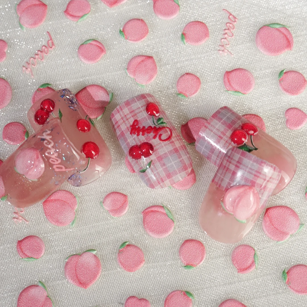Вишневый персик фрукты милые наклейки для ногтей 3d гравировка наклейки для ногтей украшения для ногтей водные переводки кавайный дизайн