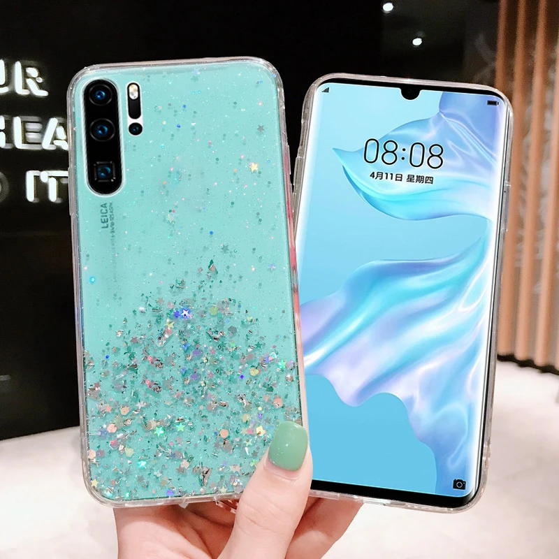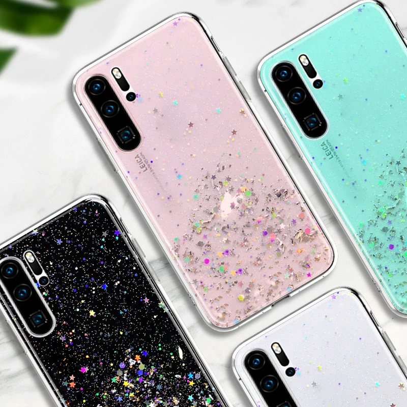 Мягкий чехол с блестками для Huawei P50, P40, P30, P20 Pro, Mate 20 Lite, P Smart 2020 Z Plus, Y9 Prime 2019, прозрачный силиконовый чехол