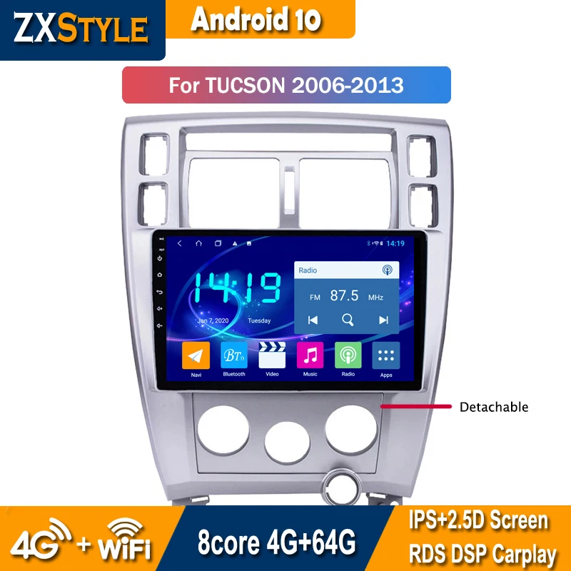 Автомагнитола 2DIN, Android 10, 4 Гб + 64 ГБ, DSP, мультимедийный видеоплеер для Hyundai Tucson 2006, 2007, 2008-2013, GPS-навигация