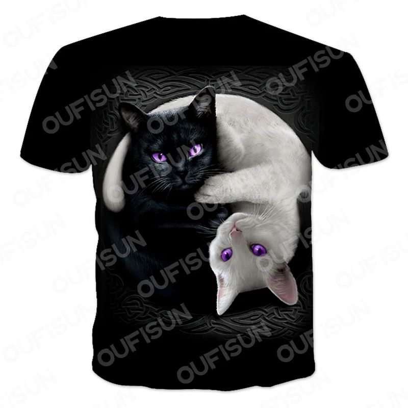 Летняя новая распродажа, милая черно-белая мужская и женская футболка оверсайз с круглым вырезом и коротким рукавом