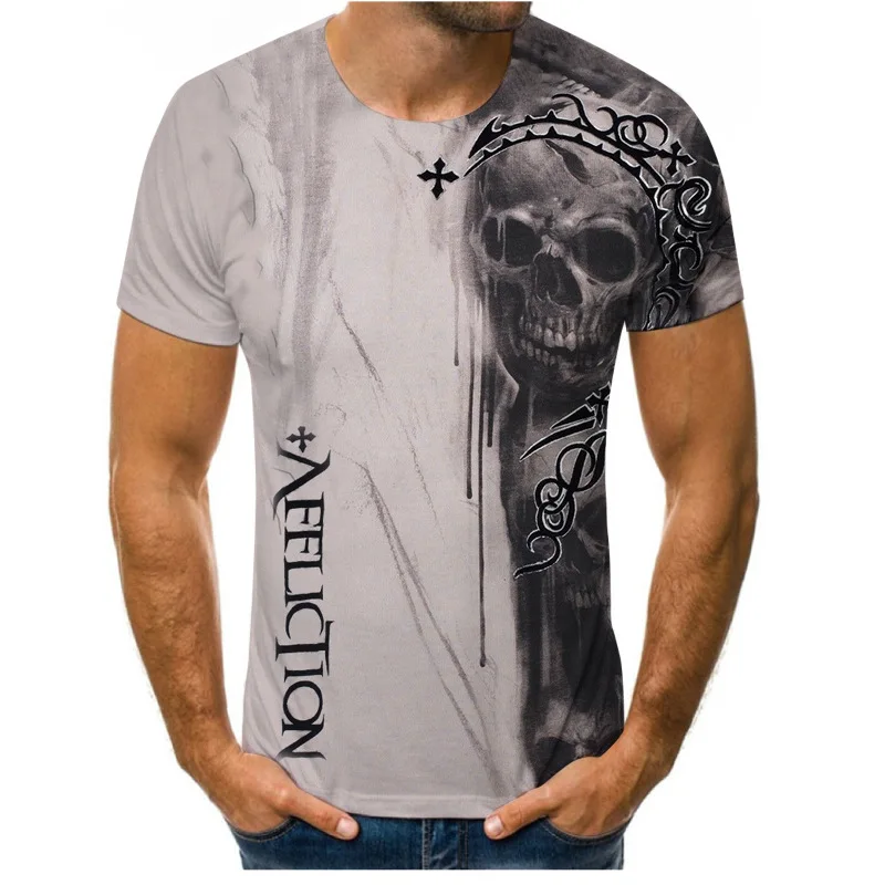 Футболка мужская с 3D-принтом головы черепа, модная повседневная Бл...