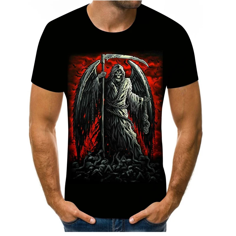 Мужская футболка с 3D-принтом черепа, черная футболка оверсайз в ви...