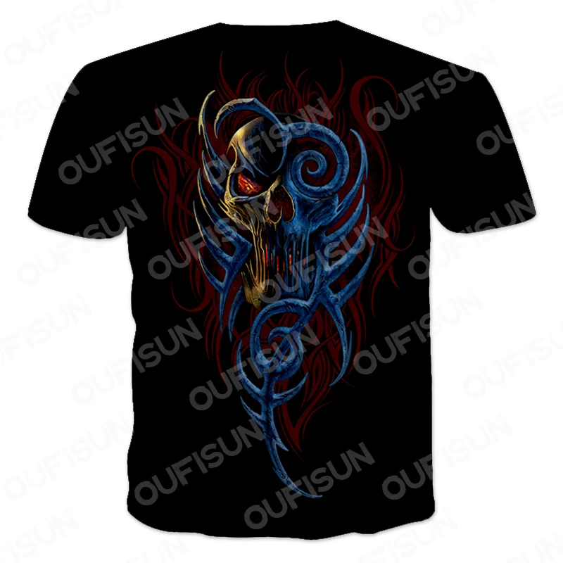 Футболка с коротким рукавом и круглым вырезом, летняя дышащая футболка большого размера с 3D-принтом черепа для мужчин и женщин