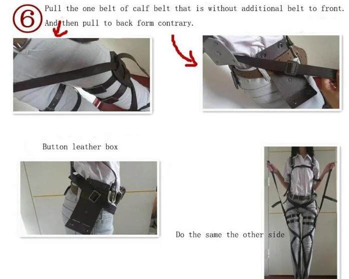 Полный комплект Levi: белая рубашка + брюки + пальто + белый шарф + юбка + лямки + плащПолный комплект Mikasa: белая рубашка + брюки + пальто + красный шарф + юбка + лямки + плащПолный комплект одежды: рубашка + брюки + пальто + юбка + лямки + плащ
