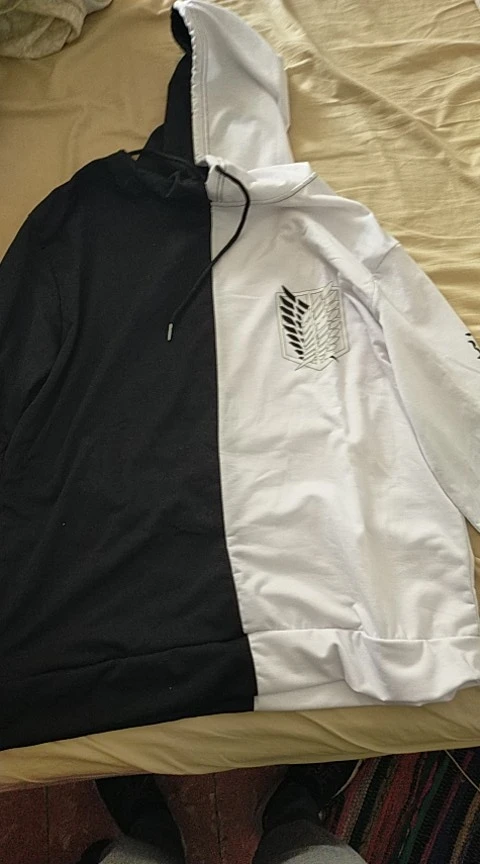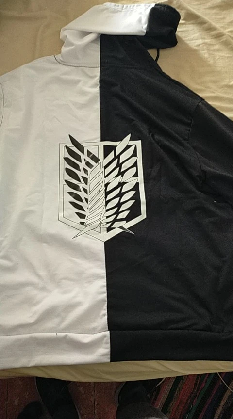 Зимняя толстовка с капюшоном с аниме атака на Титанов, черные и бел...