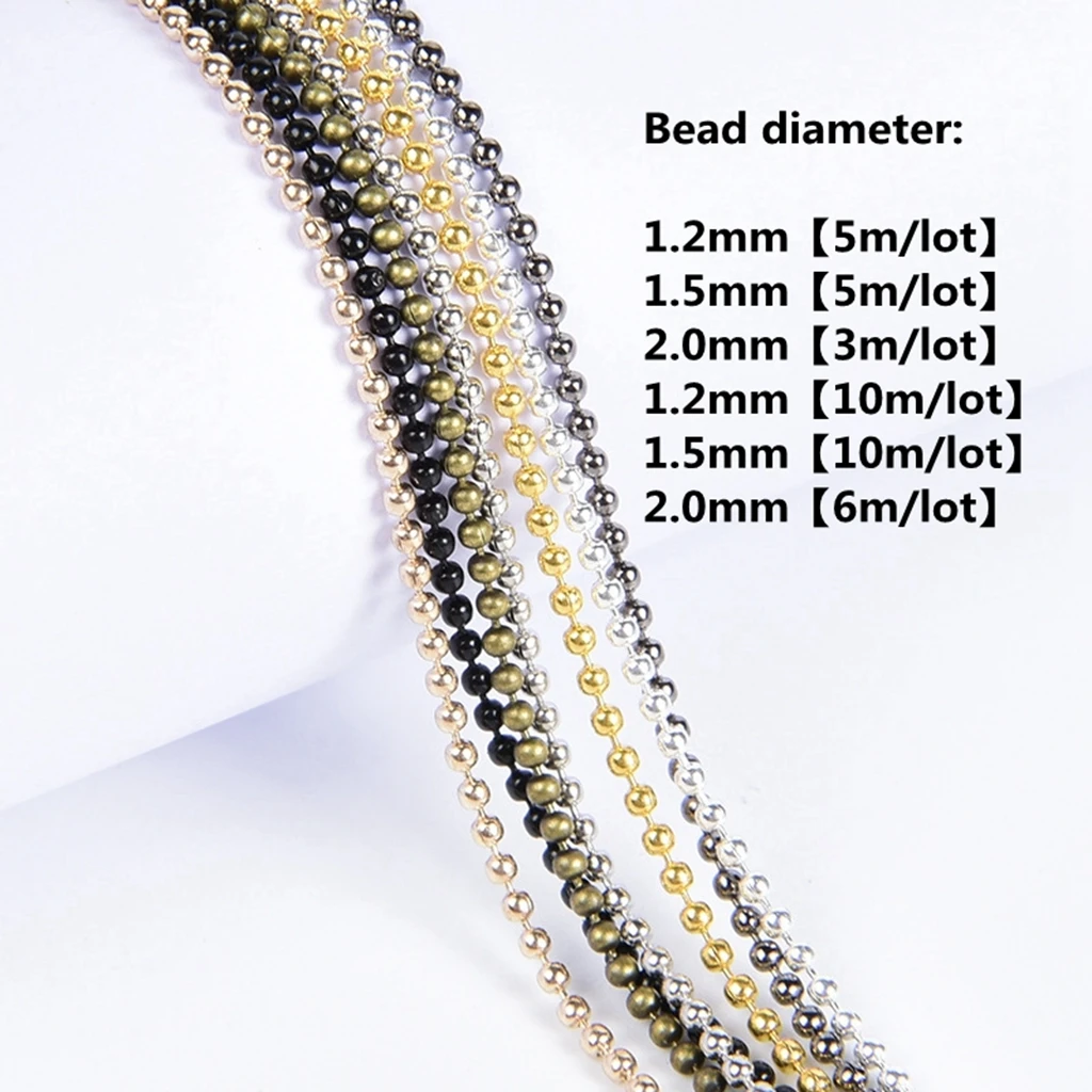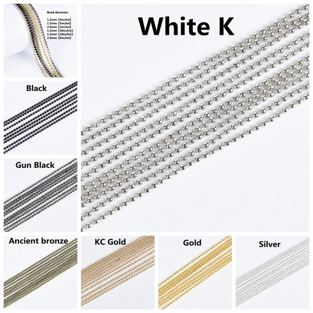 Цепочки 5 млот из металлического сплава с бусинами для ожерелий, Ювелирная фурнитура сделай сам 1,2, 1,2, 2,0 мм
